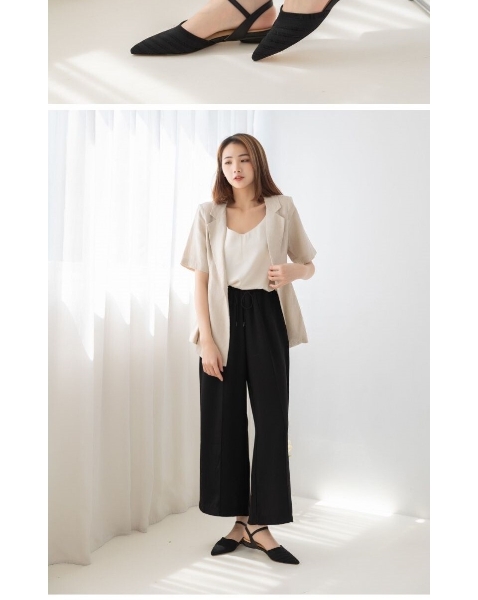 優雅美型.尖頭針織低跟涼鞋 -黑色