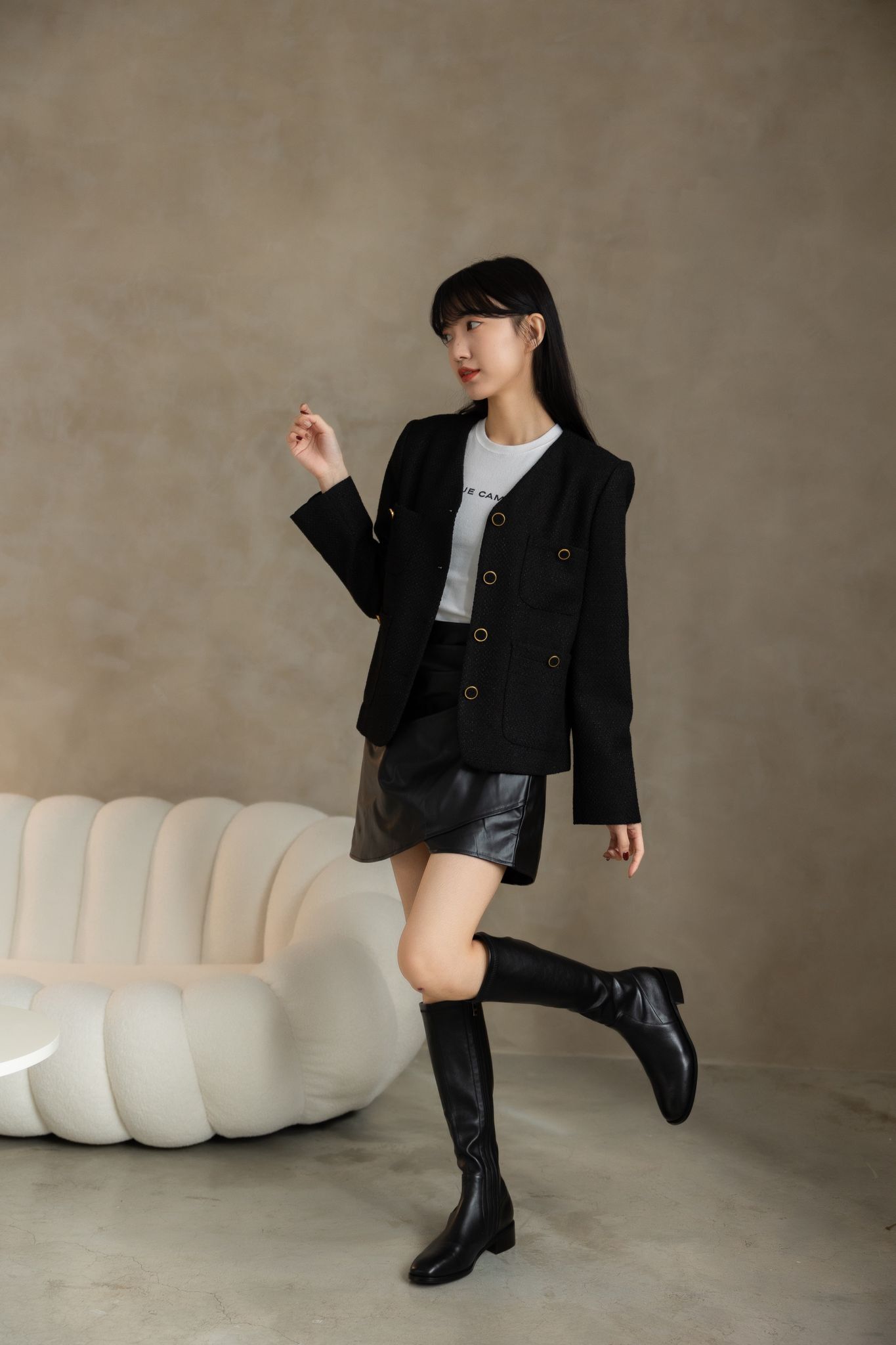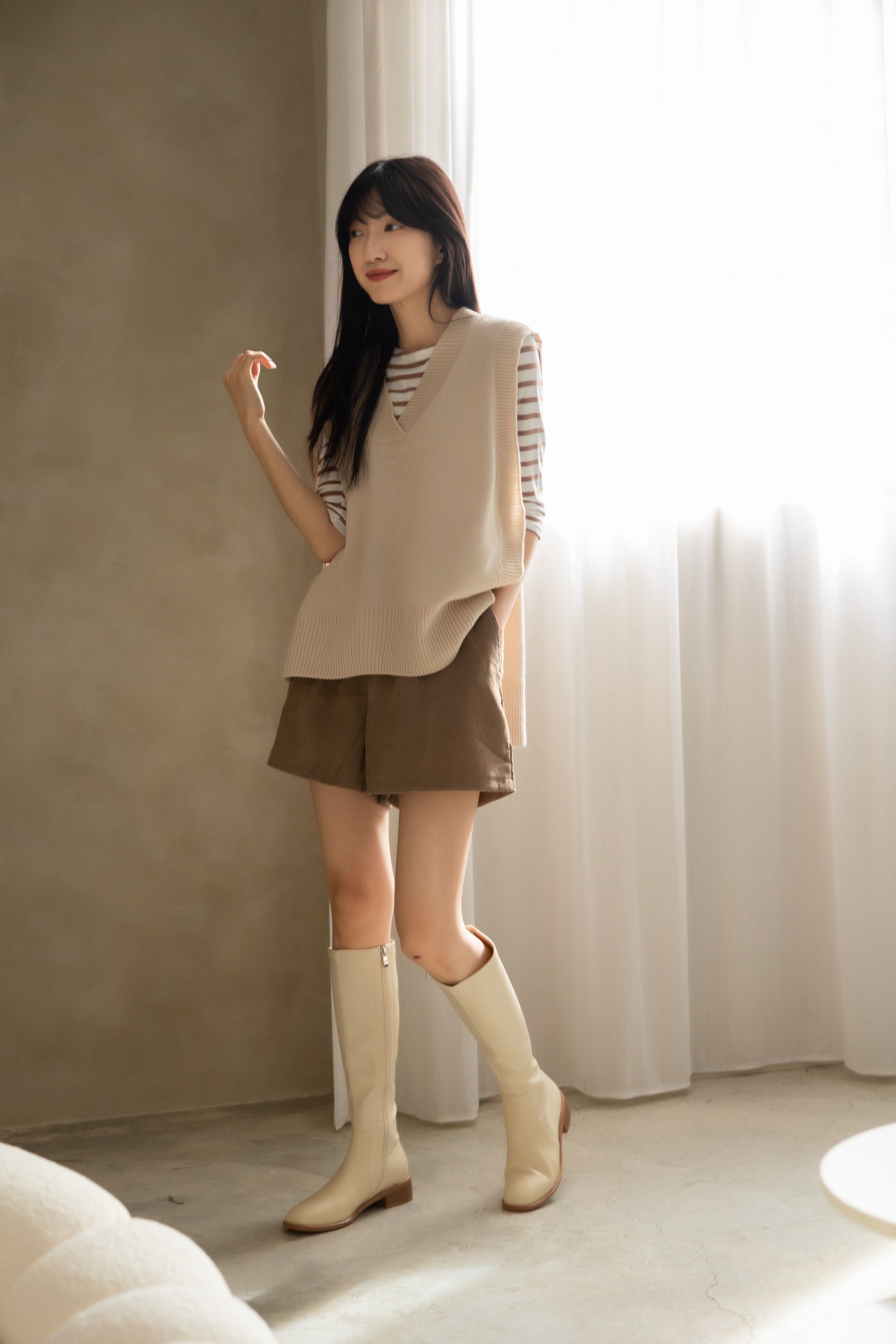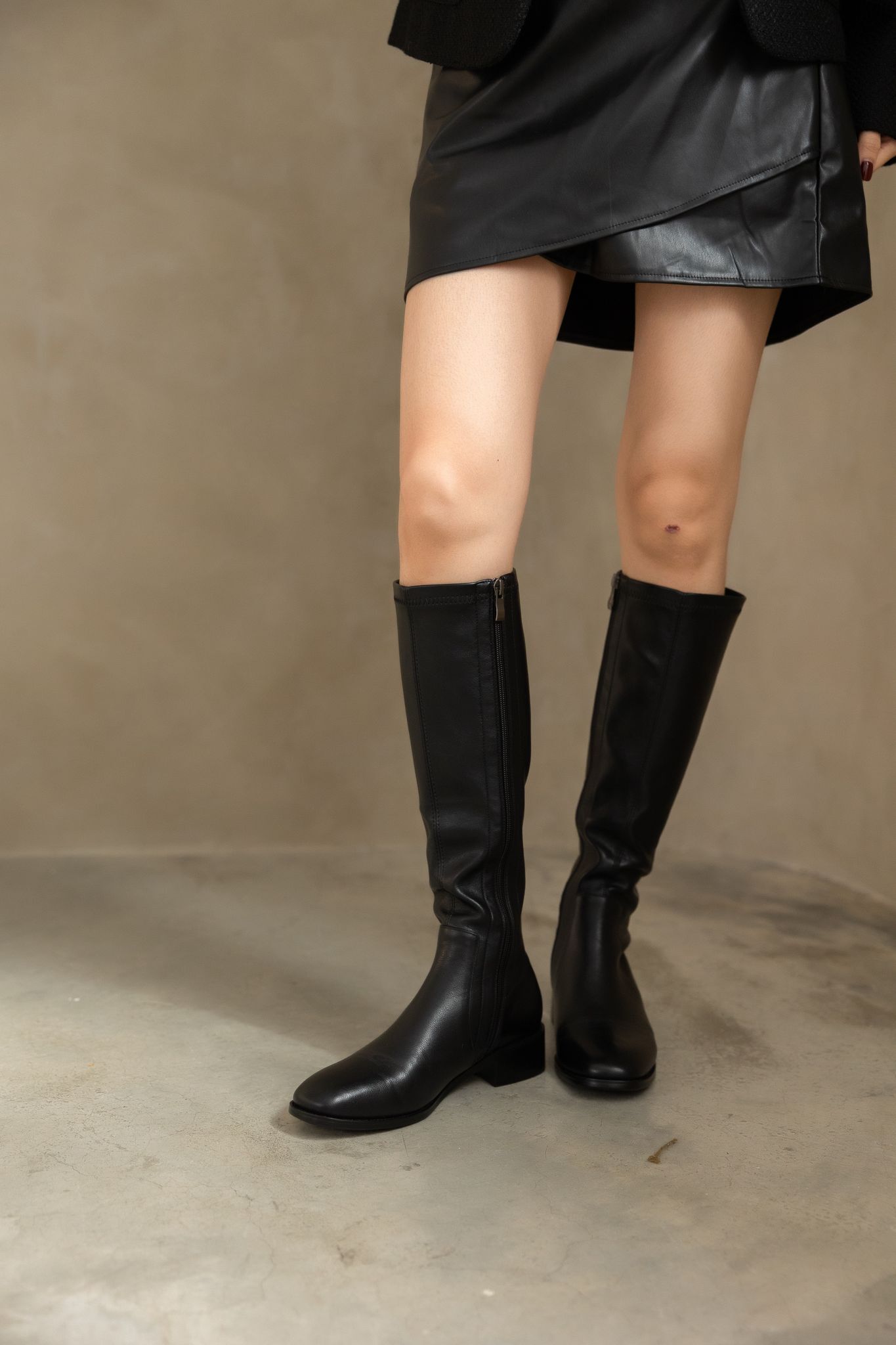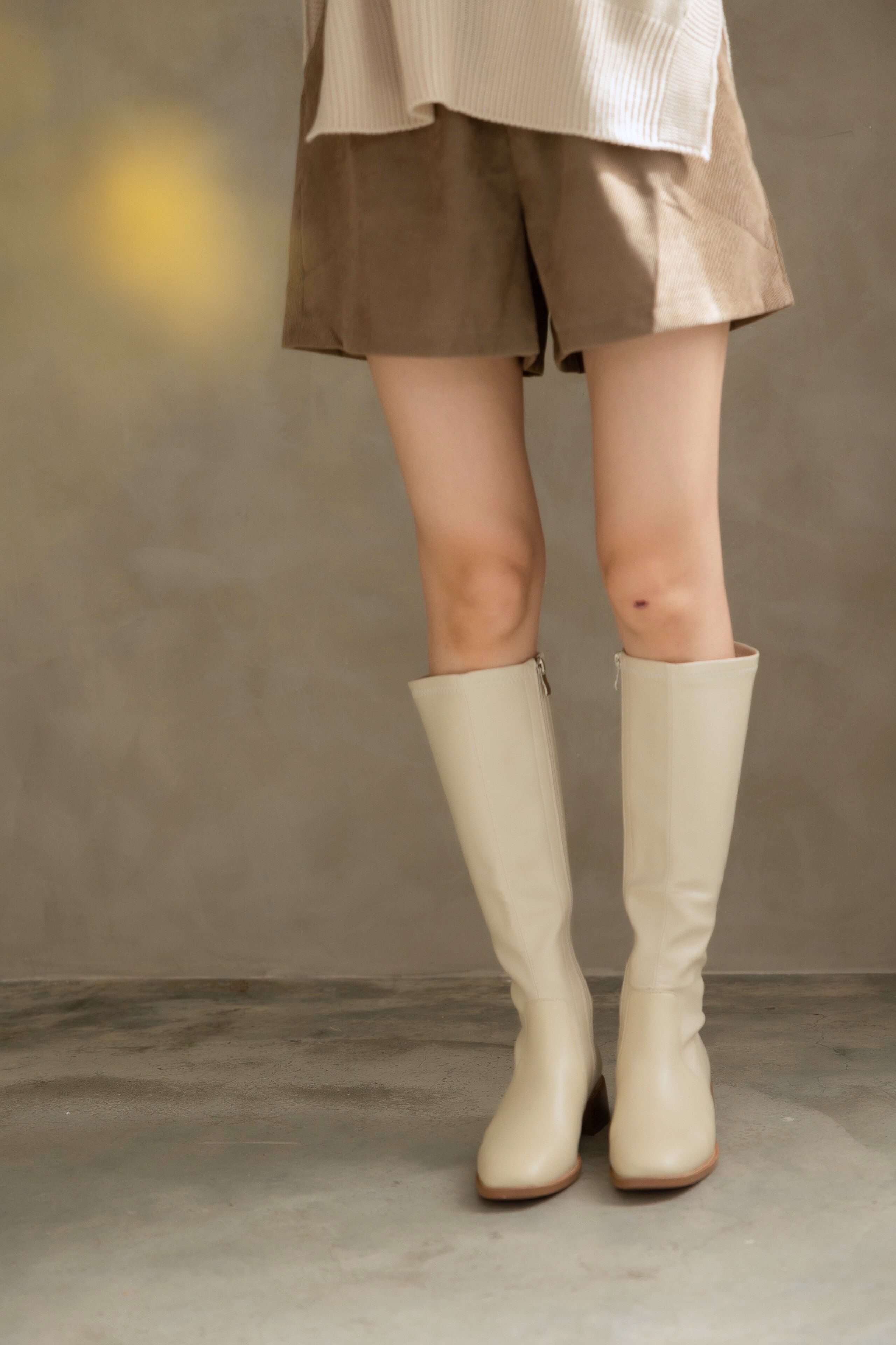 現貨 黑36 38 米白36 韓劇女神 - 方頭低跟真皮長靴 -2色