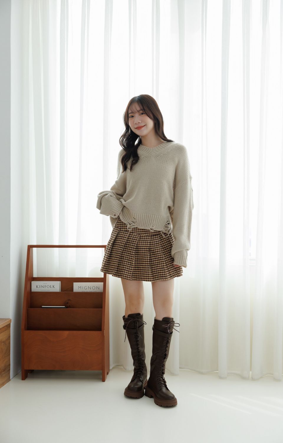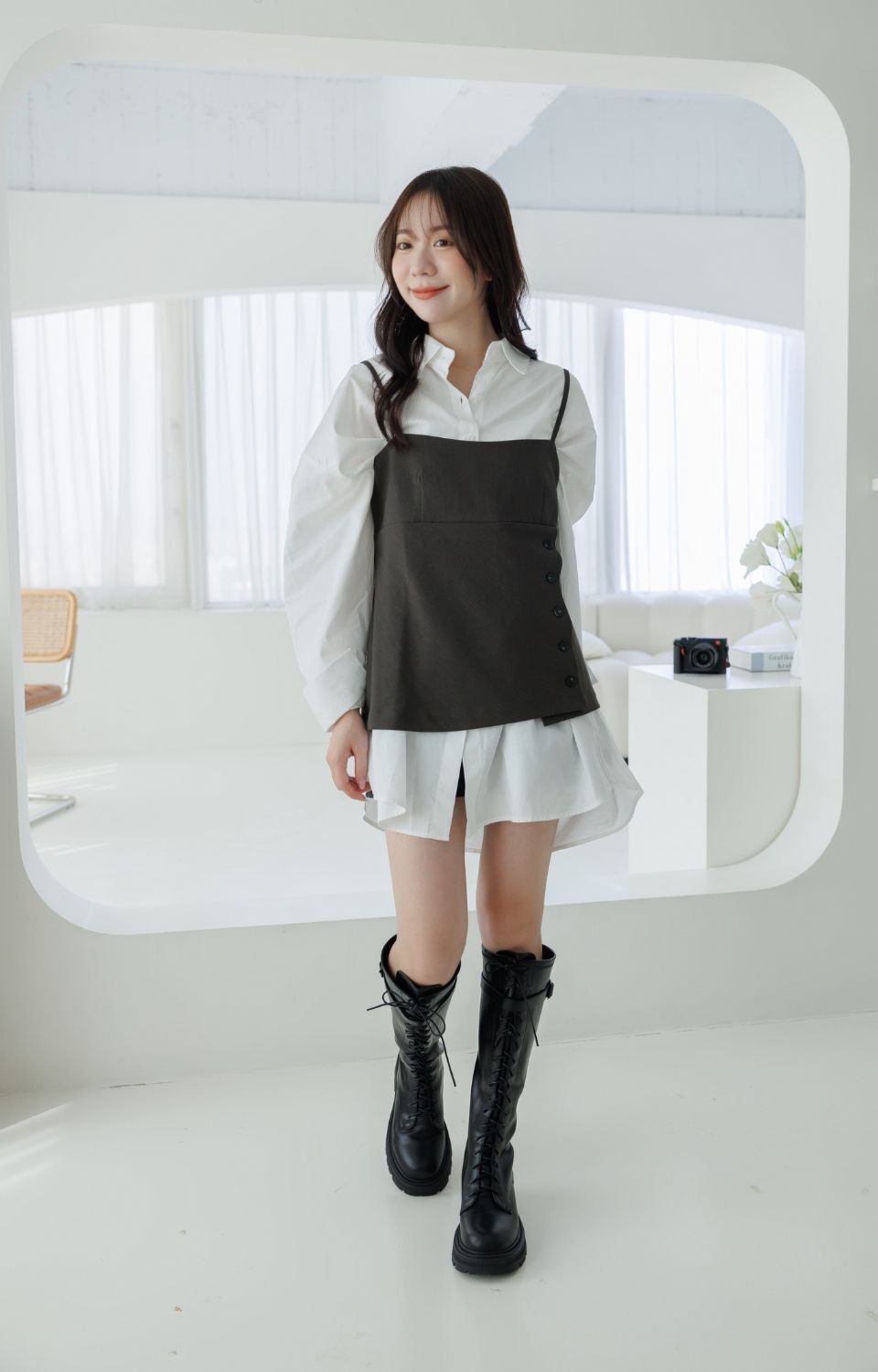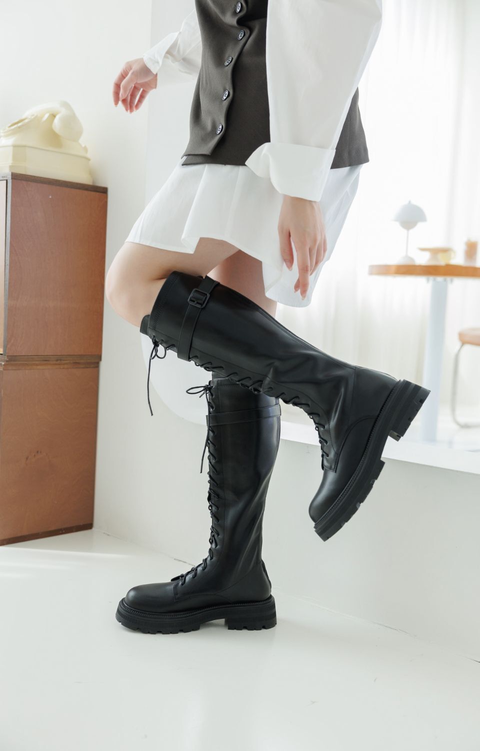 現貨 黑36 39 棕40 個性綁帶厚底後拉鍊長靴 -2色