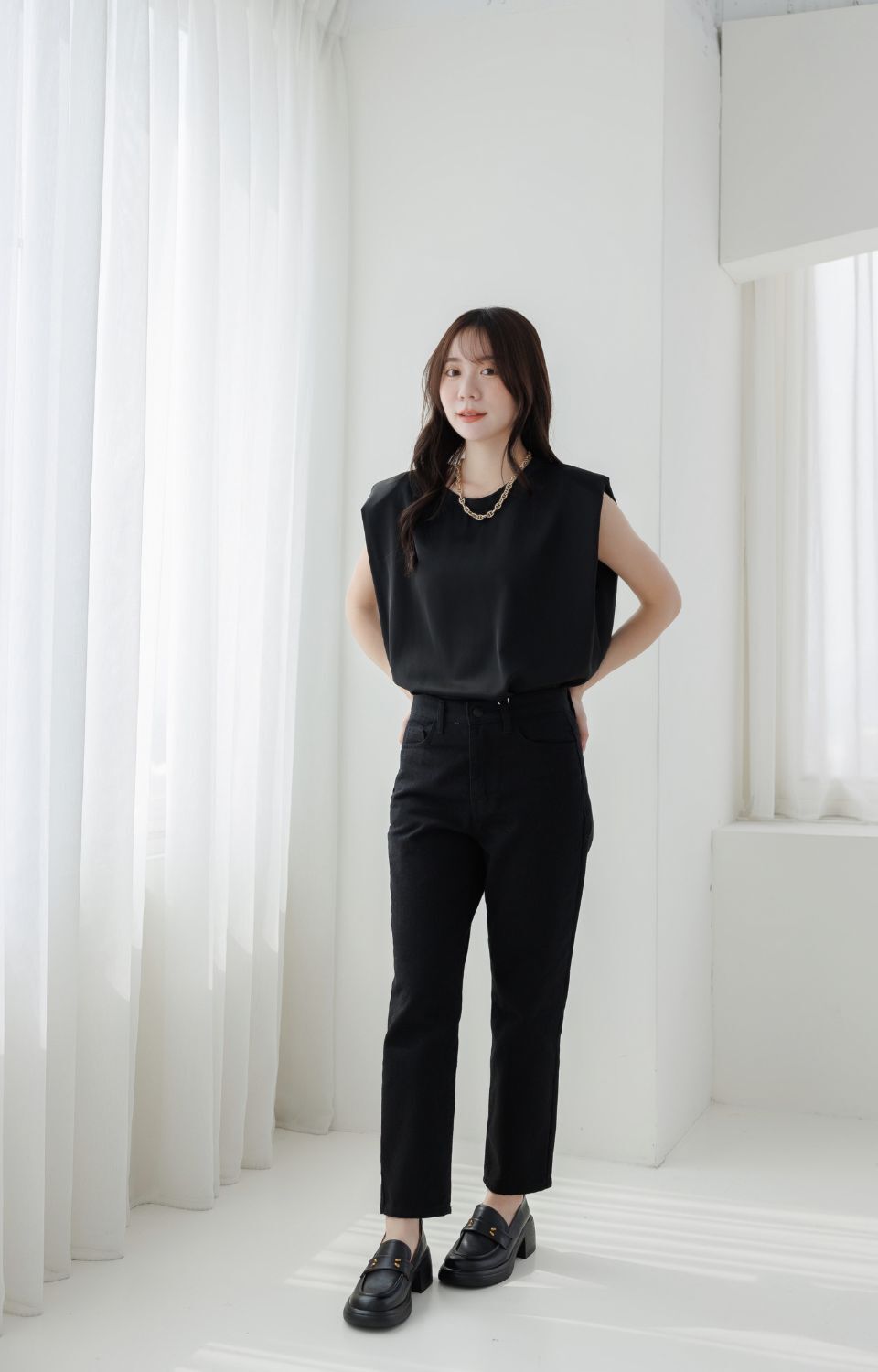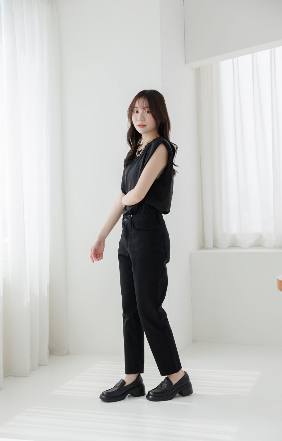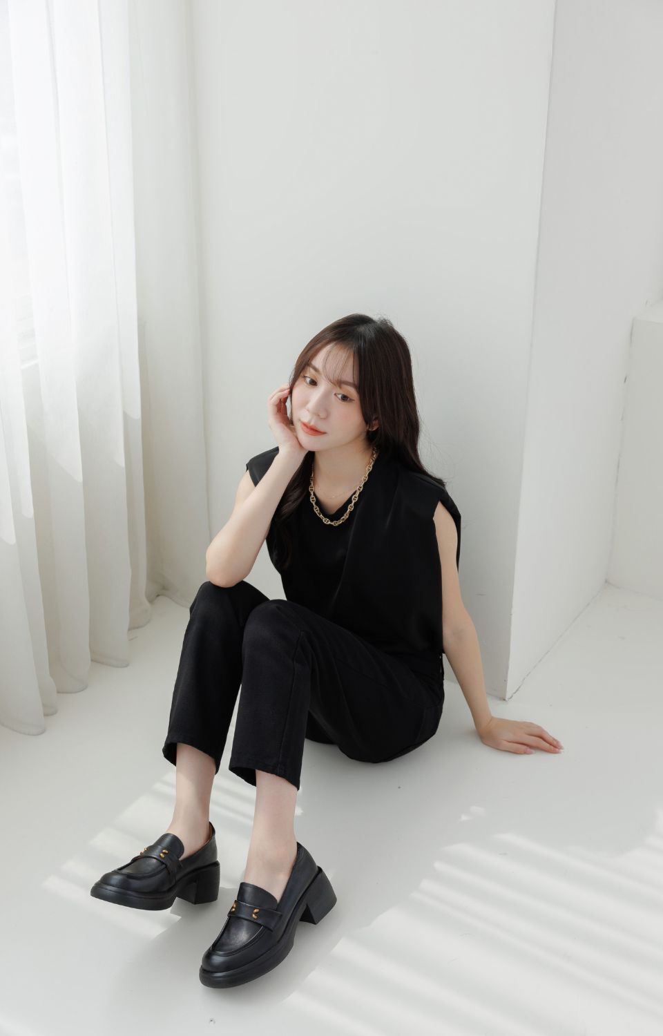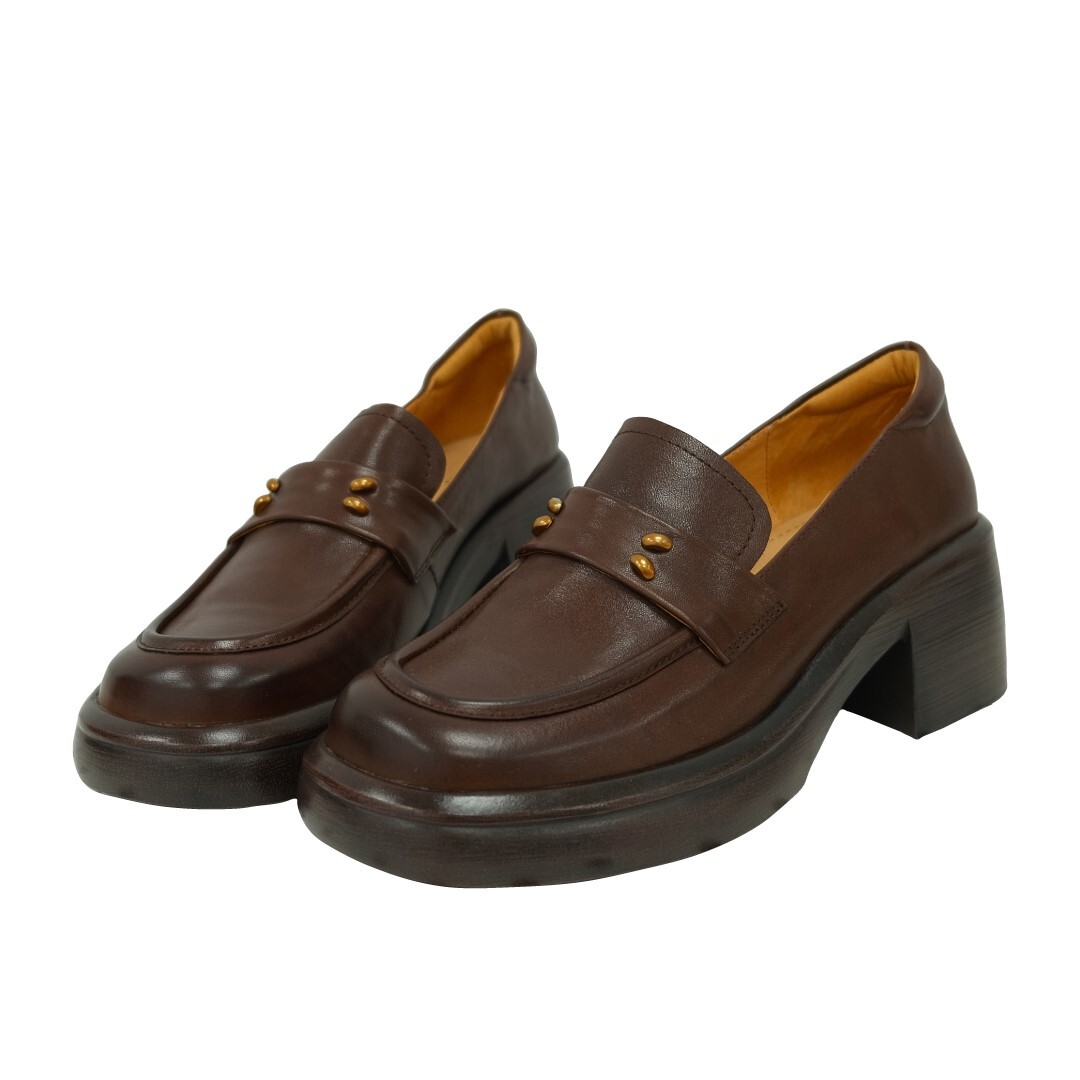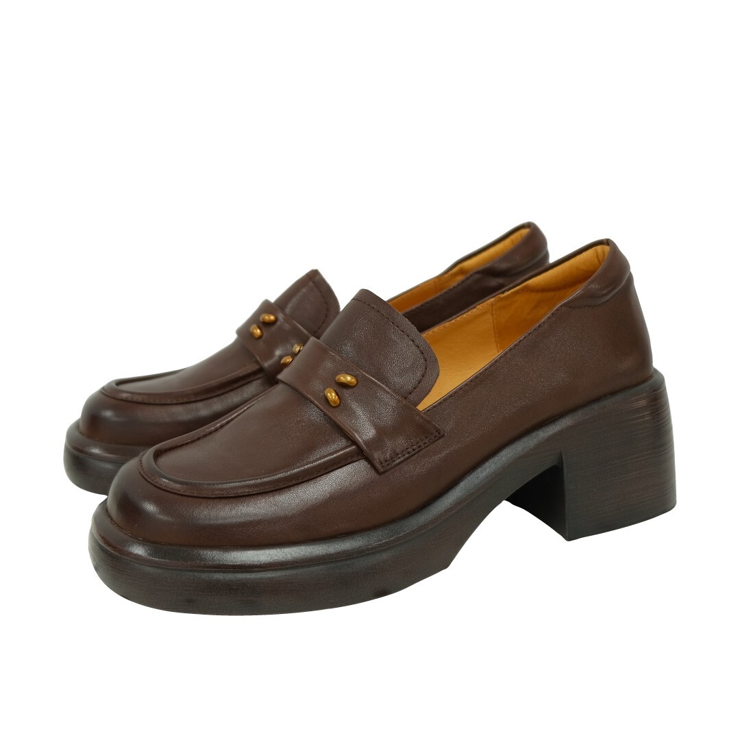 現貨 棕36 簡約金粒厚底樂福鞋