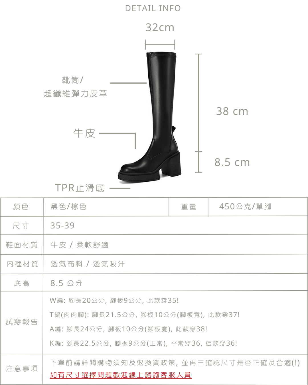 (現+預) 氣勢長腿粗跟厚底長靴 -2色