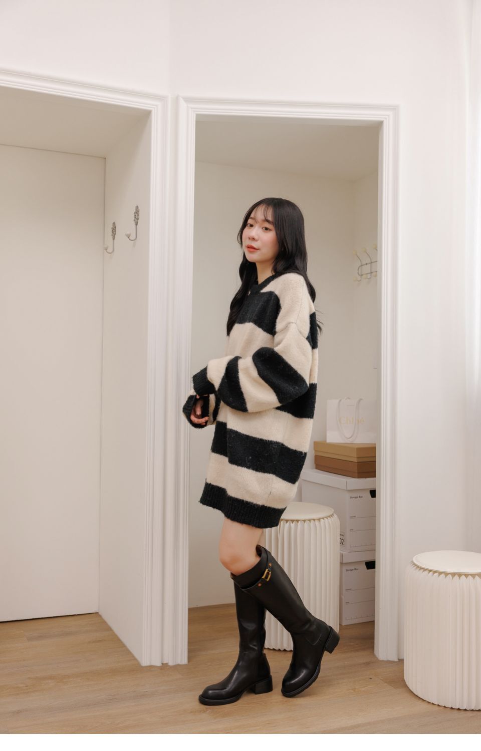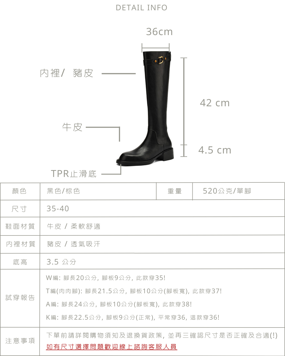現貨 黑35 時尚側扣真皮長靴