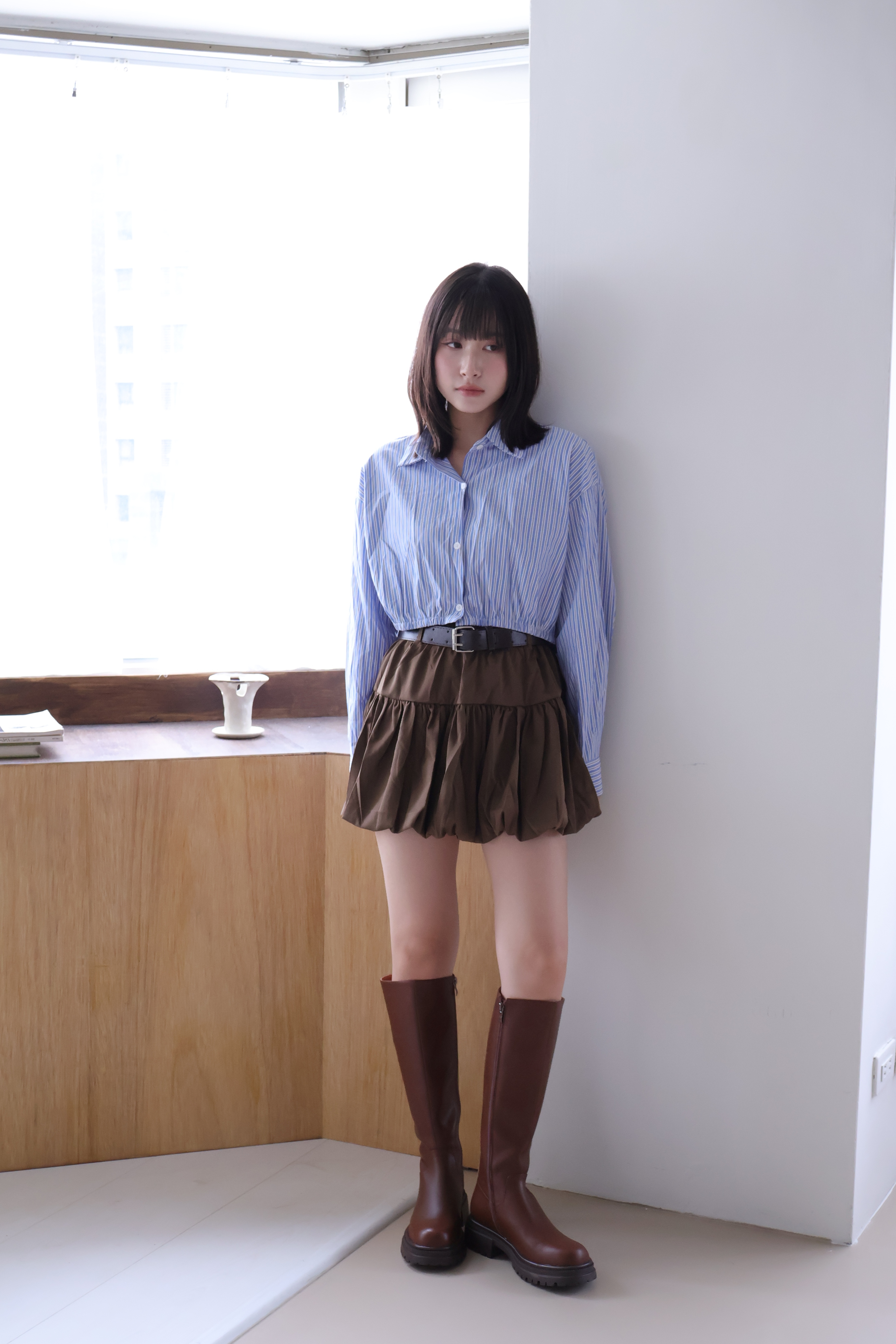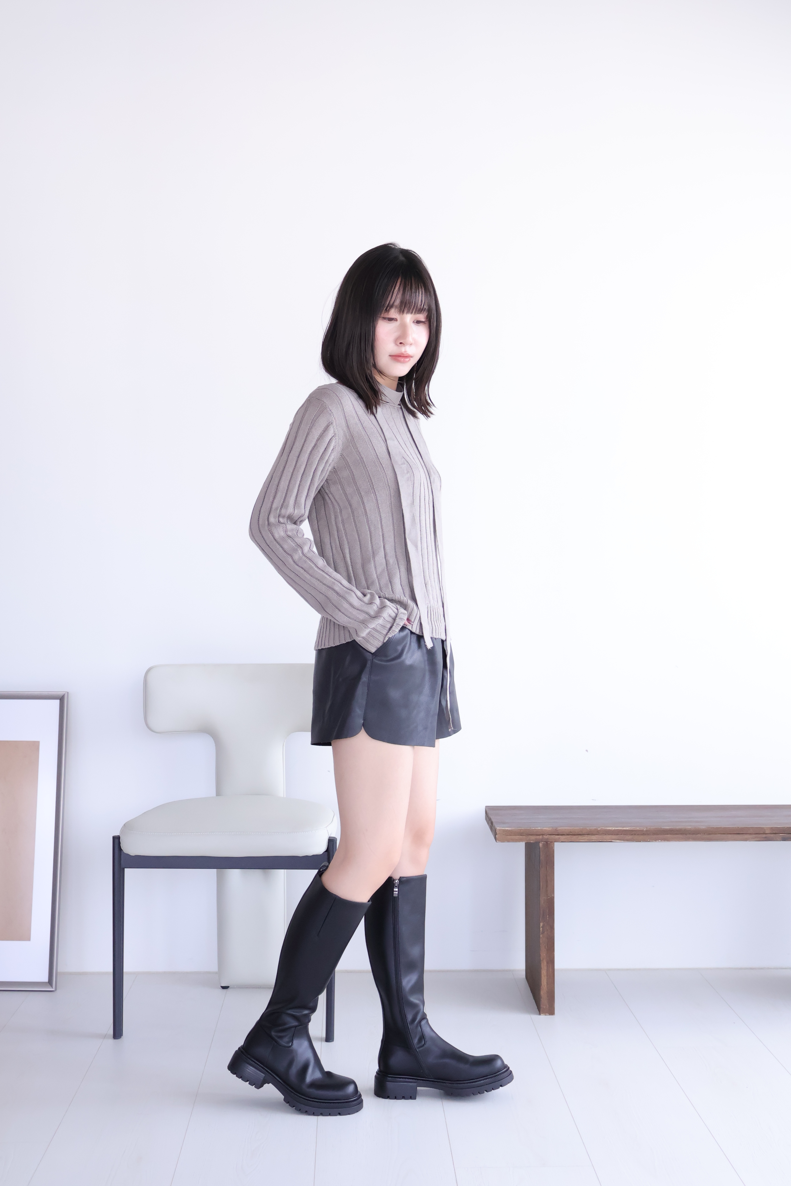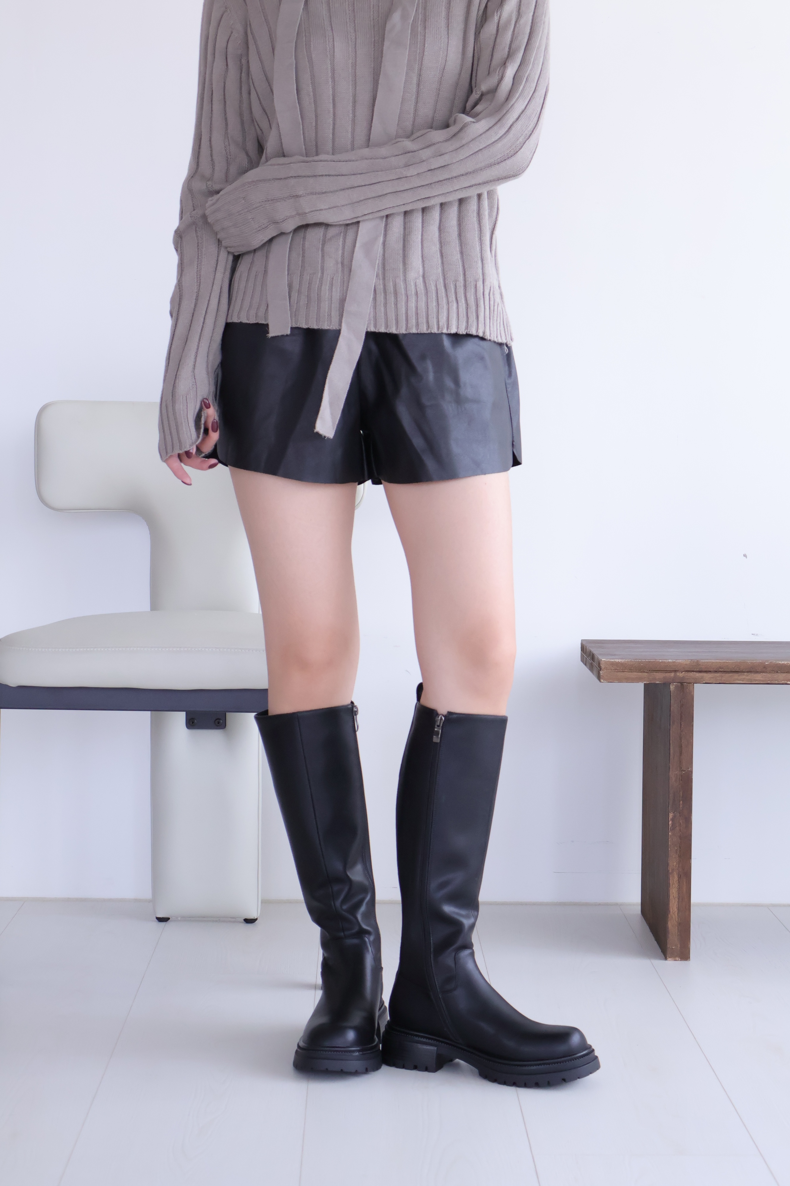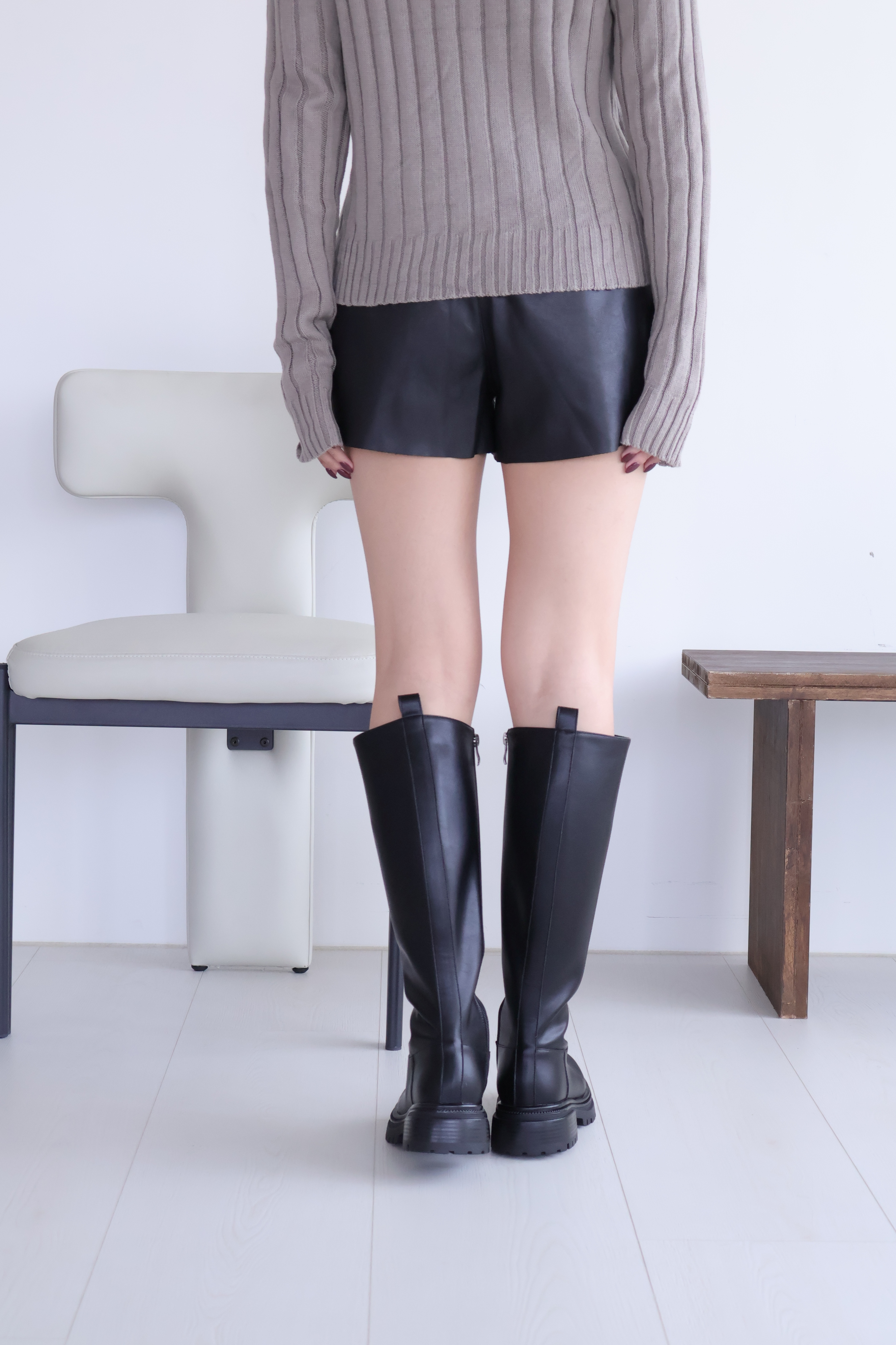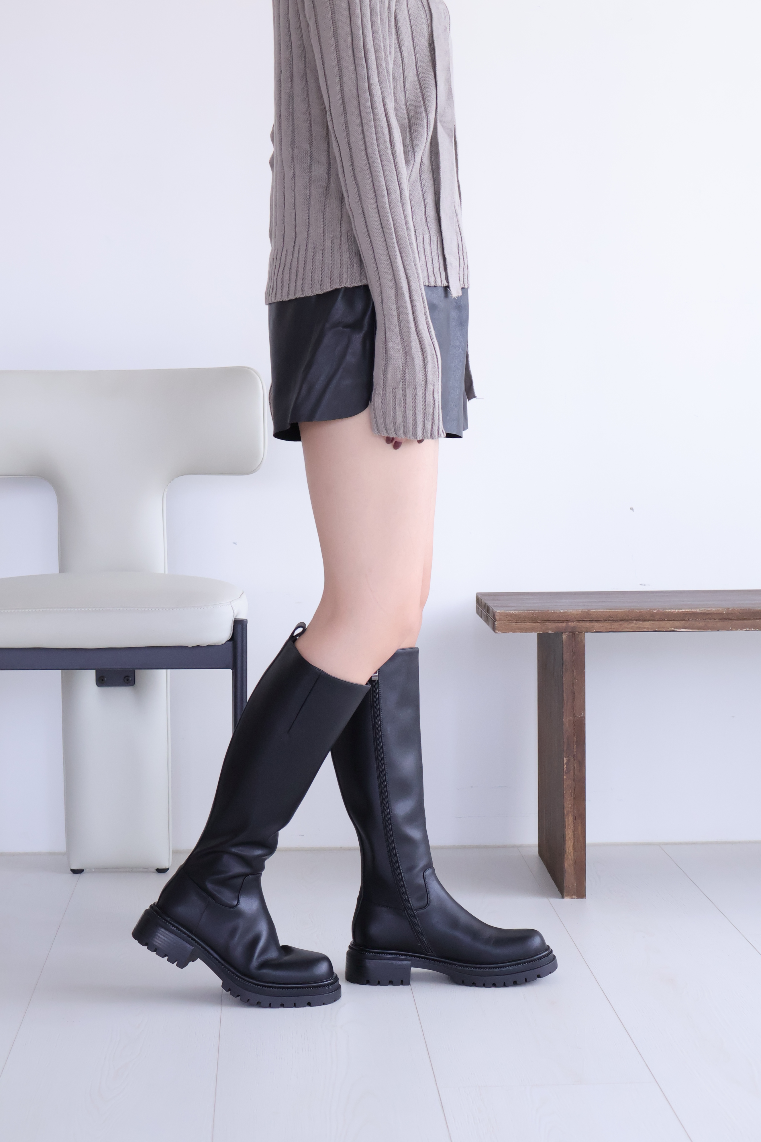 現貨 黑35 36 37 38 棕38方頭個性厚底真皮長靴 -2色