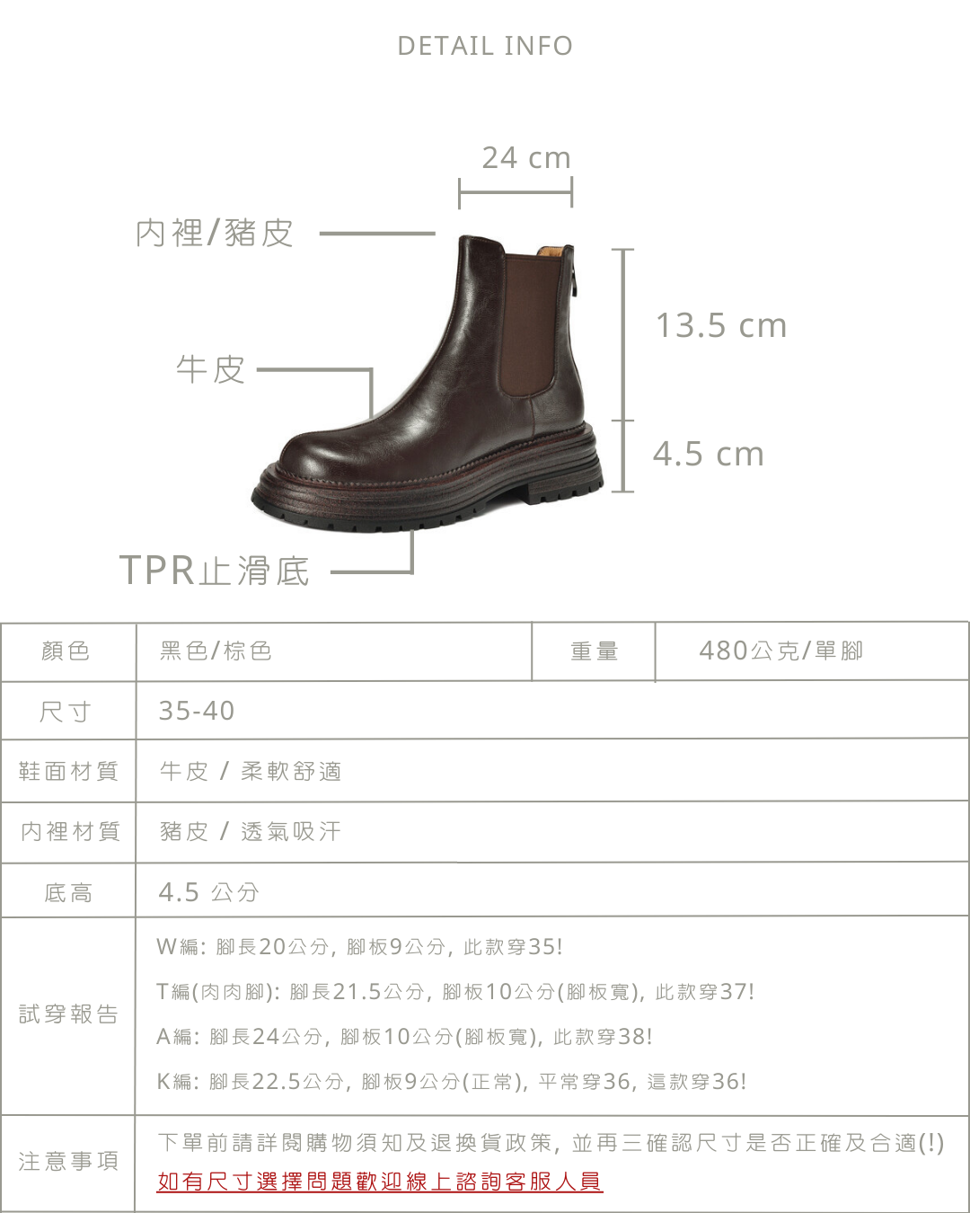 現貨 棕39 圓頭厚底後拉鍊短靴