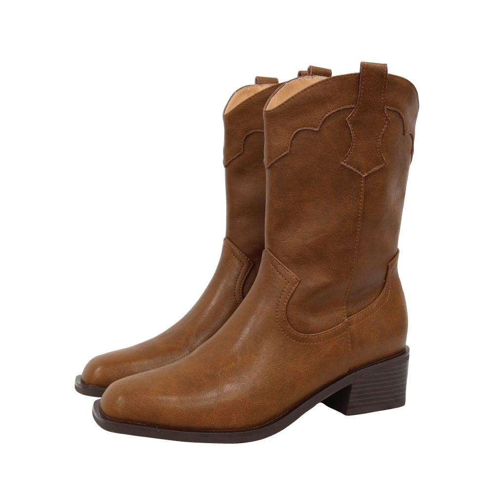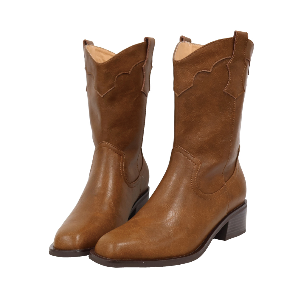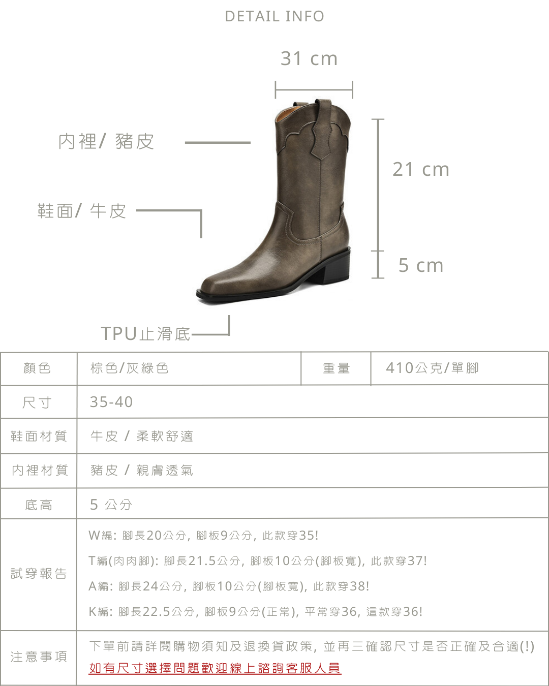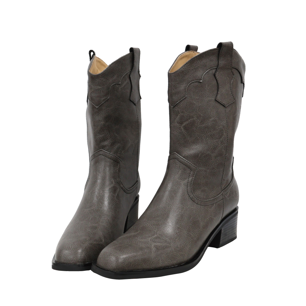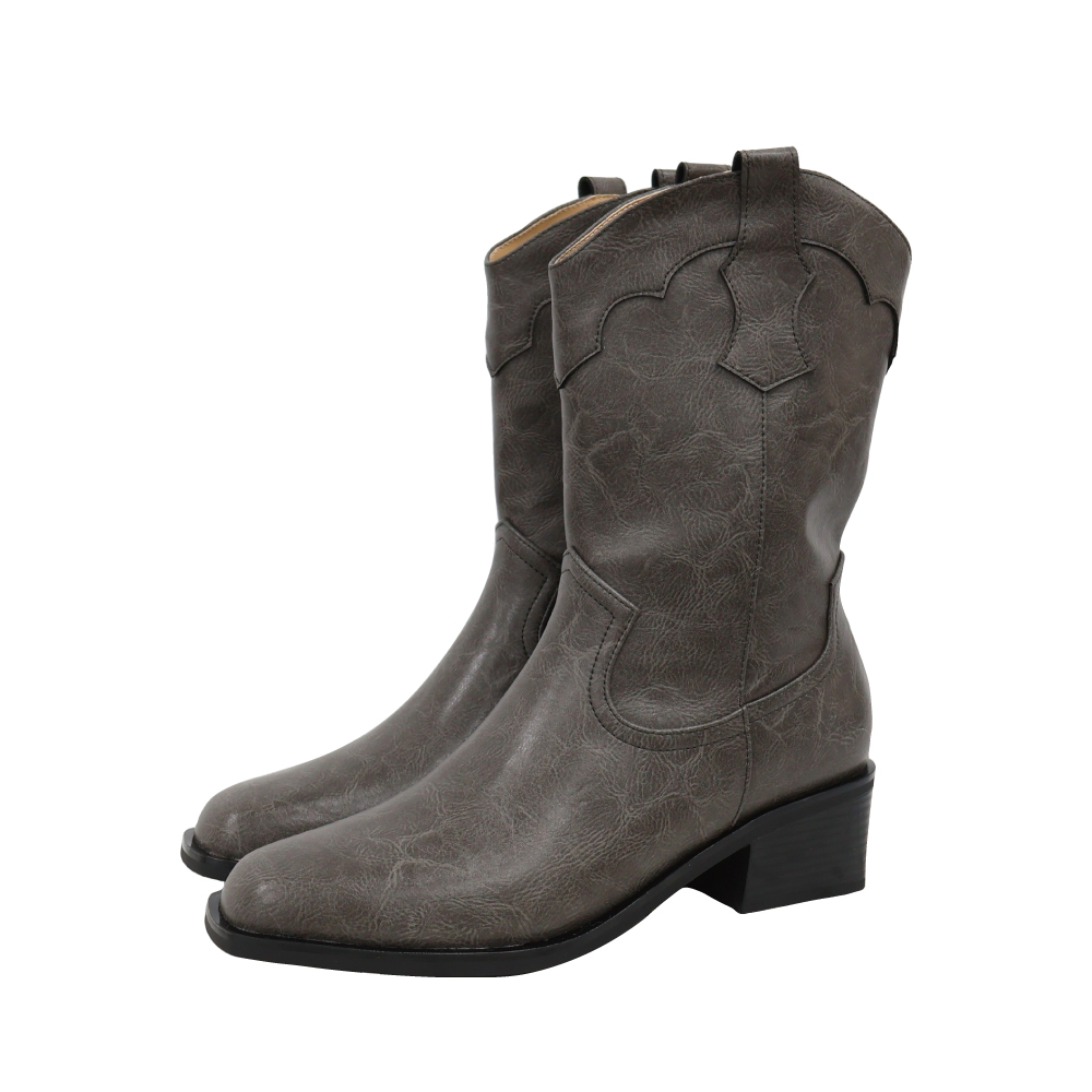 現貨 灰綠38 棕39 40 復古牛仔西部短靴 -2色