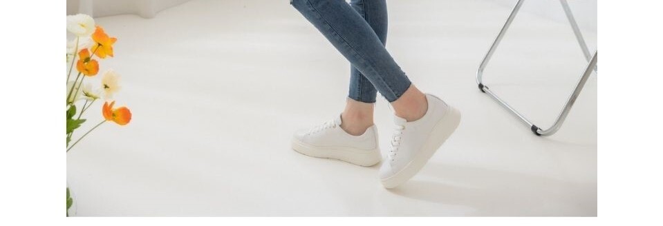 全牛皮厚底綁帶小白鞋