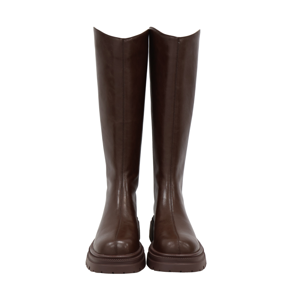 現貨 棕37 經典顯瘦V口厚底長靴 -2色