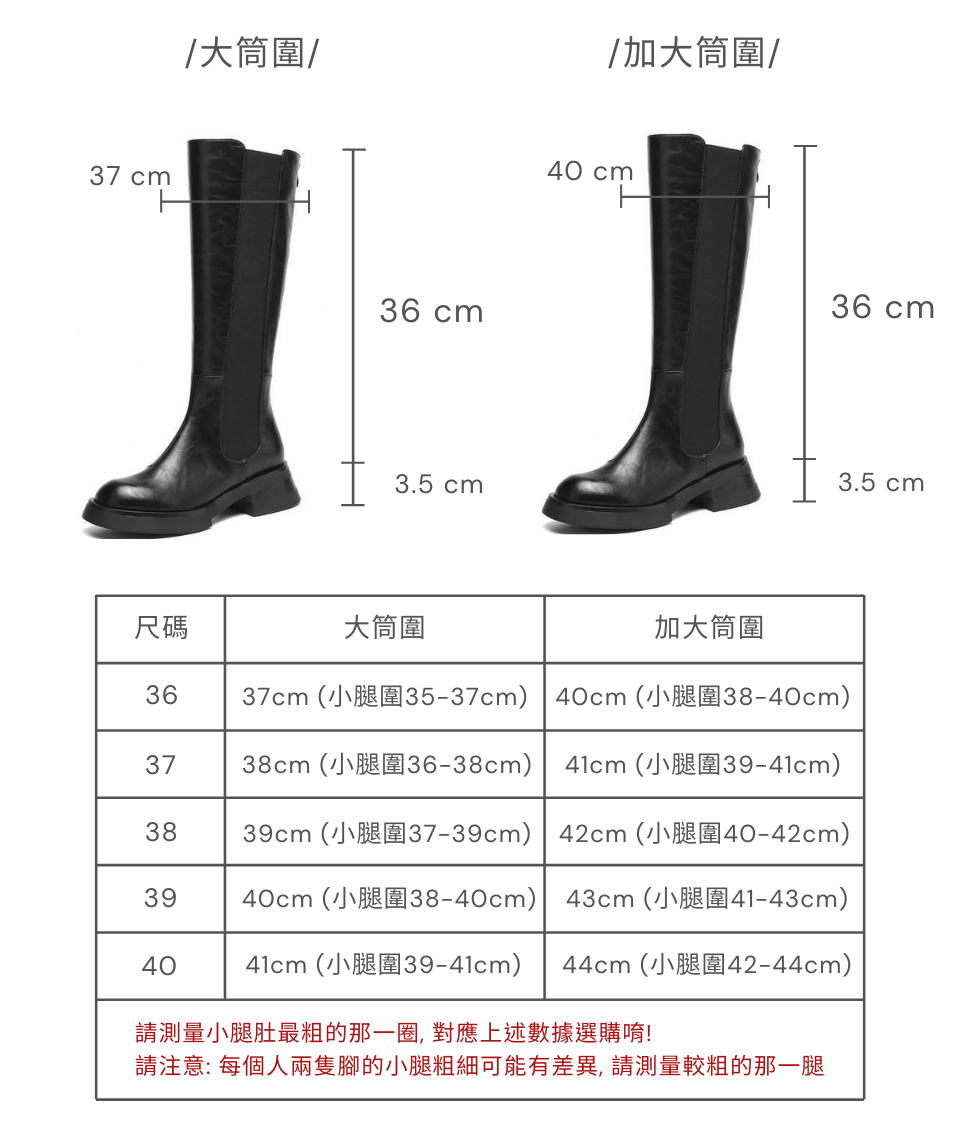 加大筒圍-經典圓頭厚底長靴 -2色