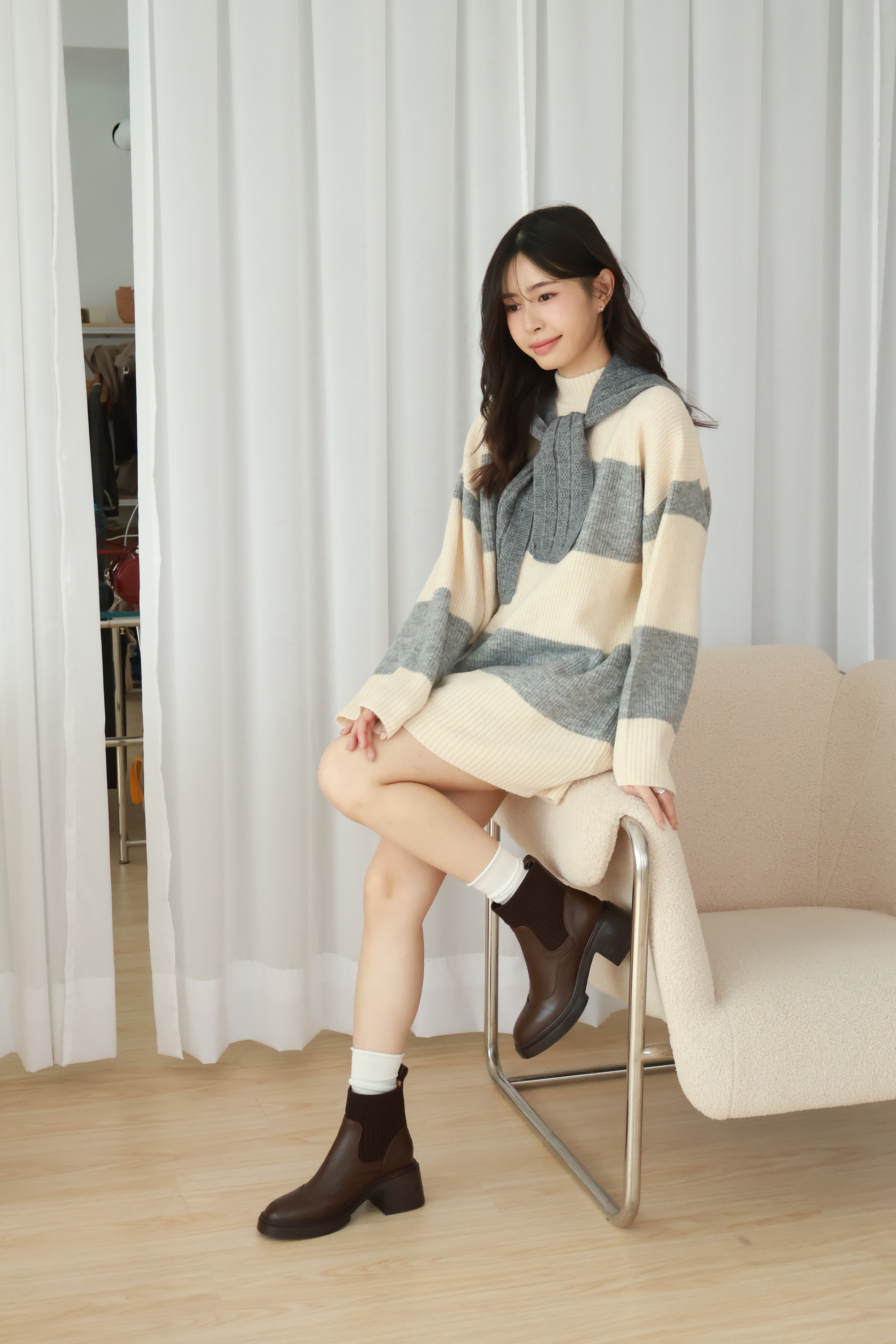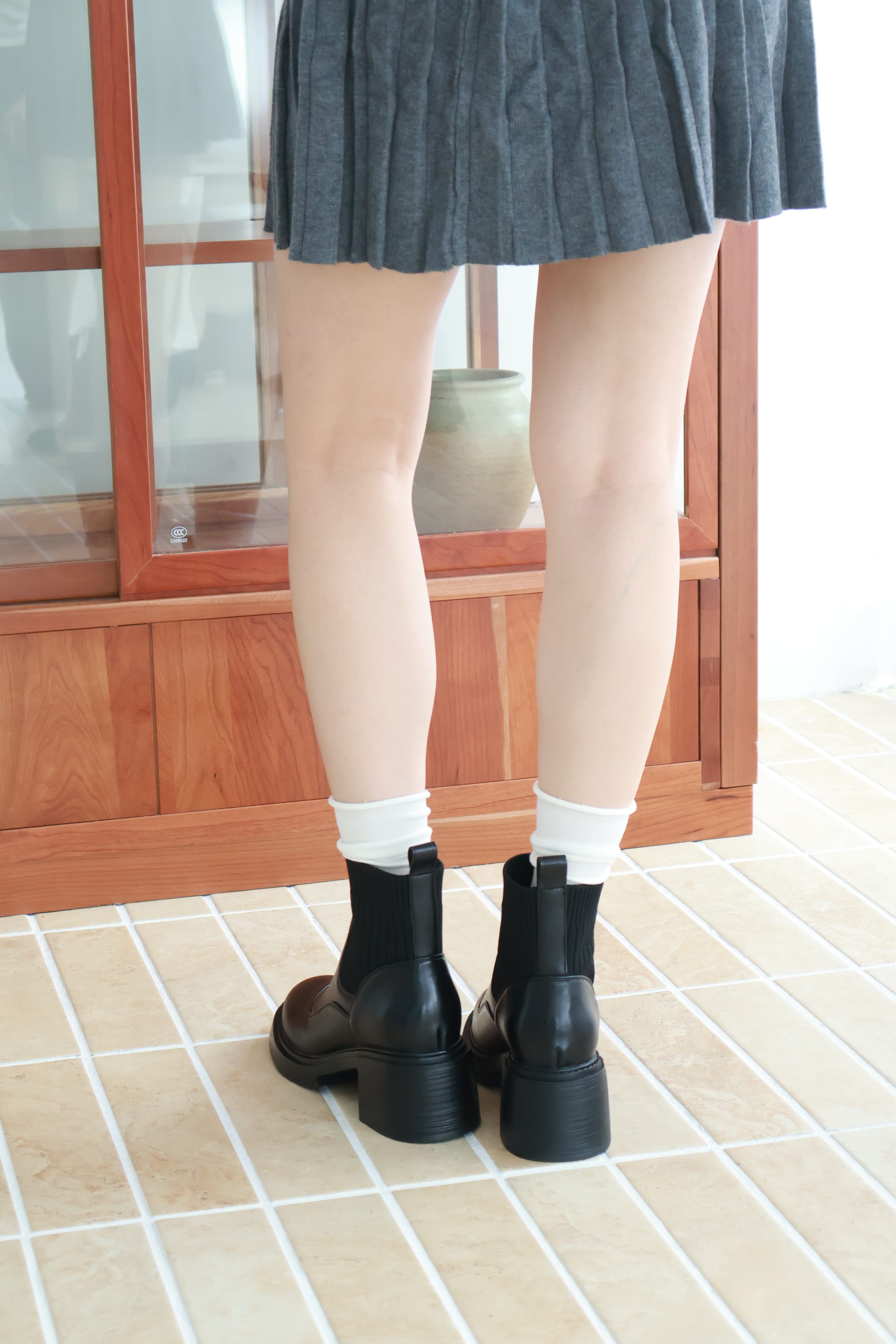 現貨 黑37 圓頭針織拼接短靴