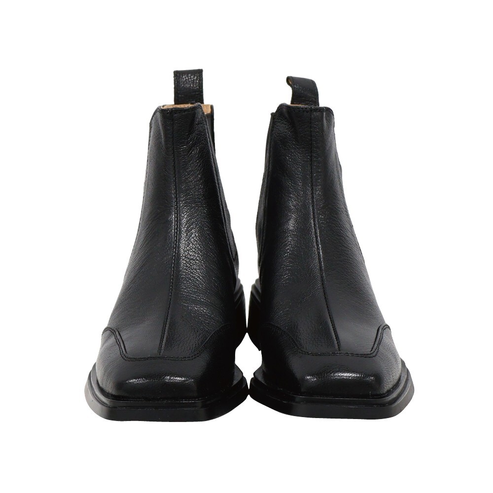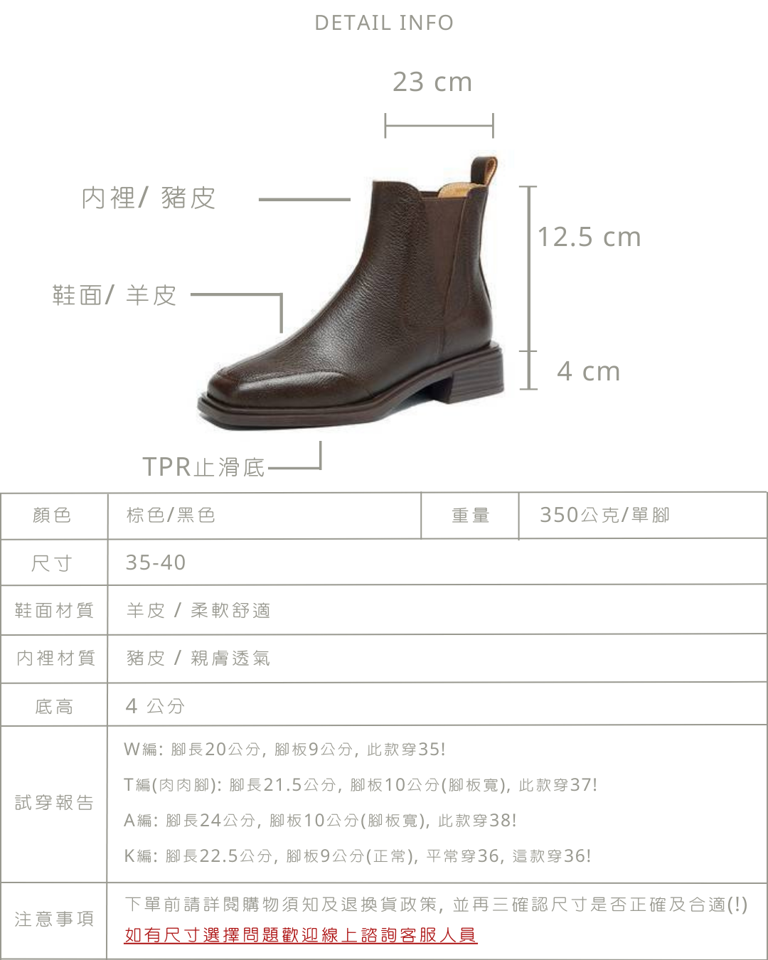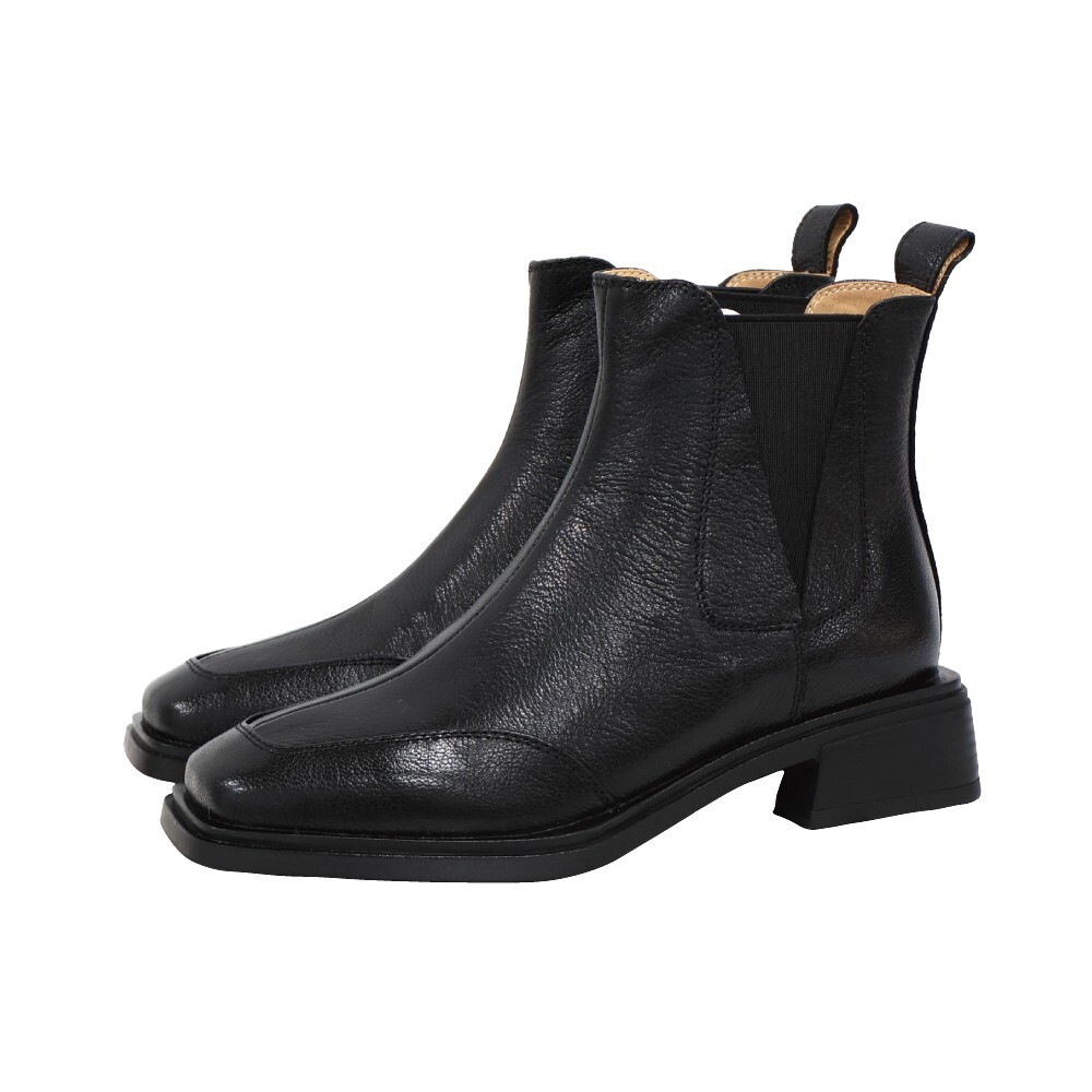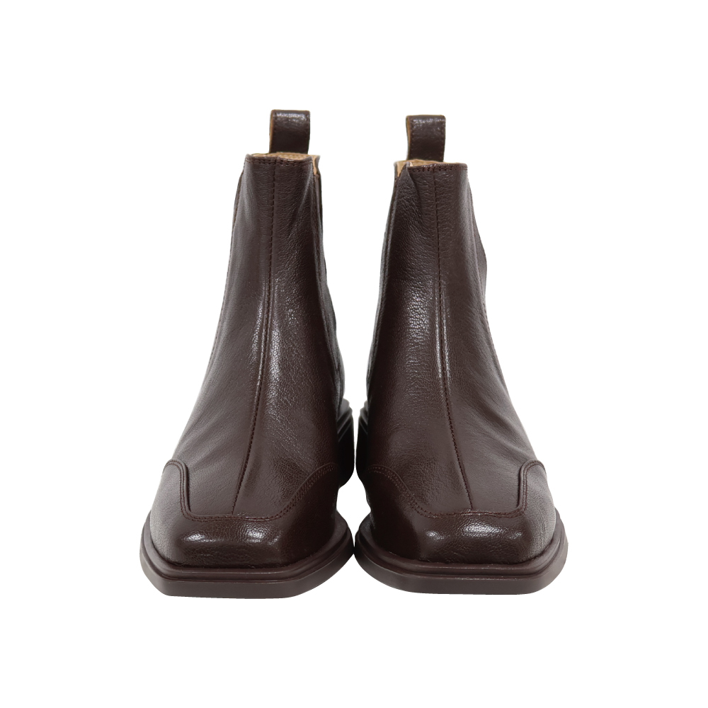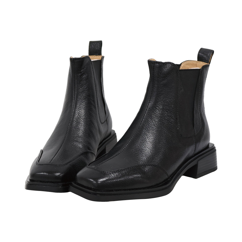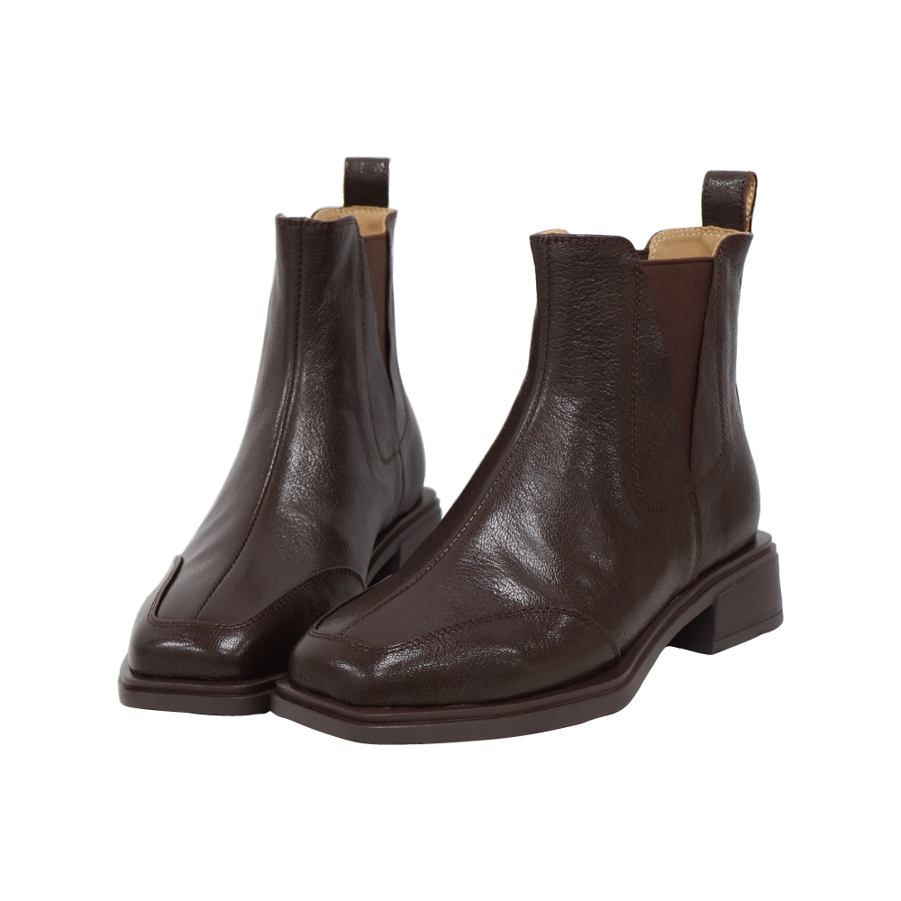 現貨 黑35 棕37 方頭車線低跟短靴 -2色