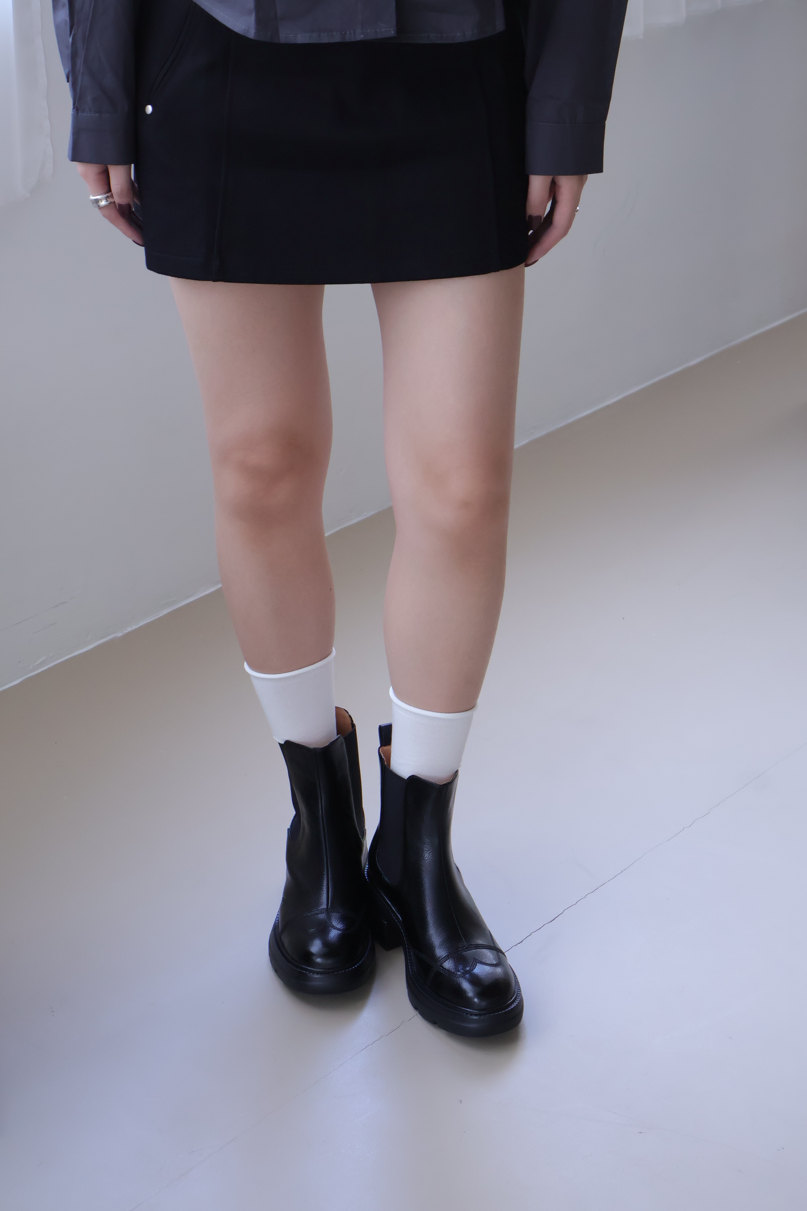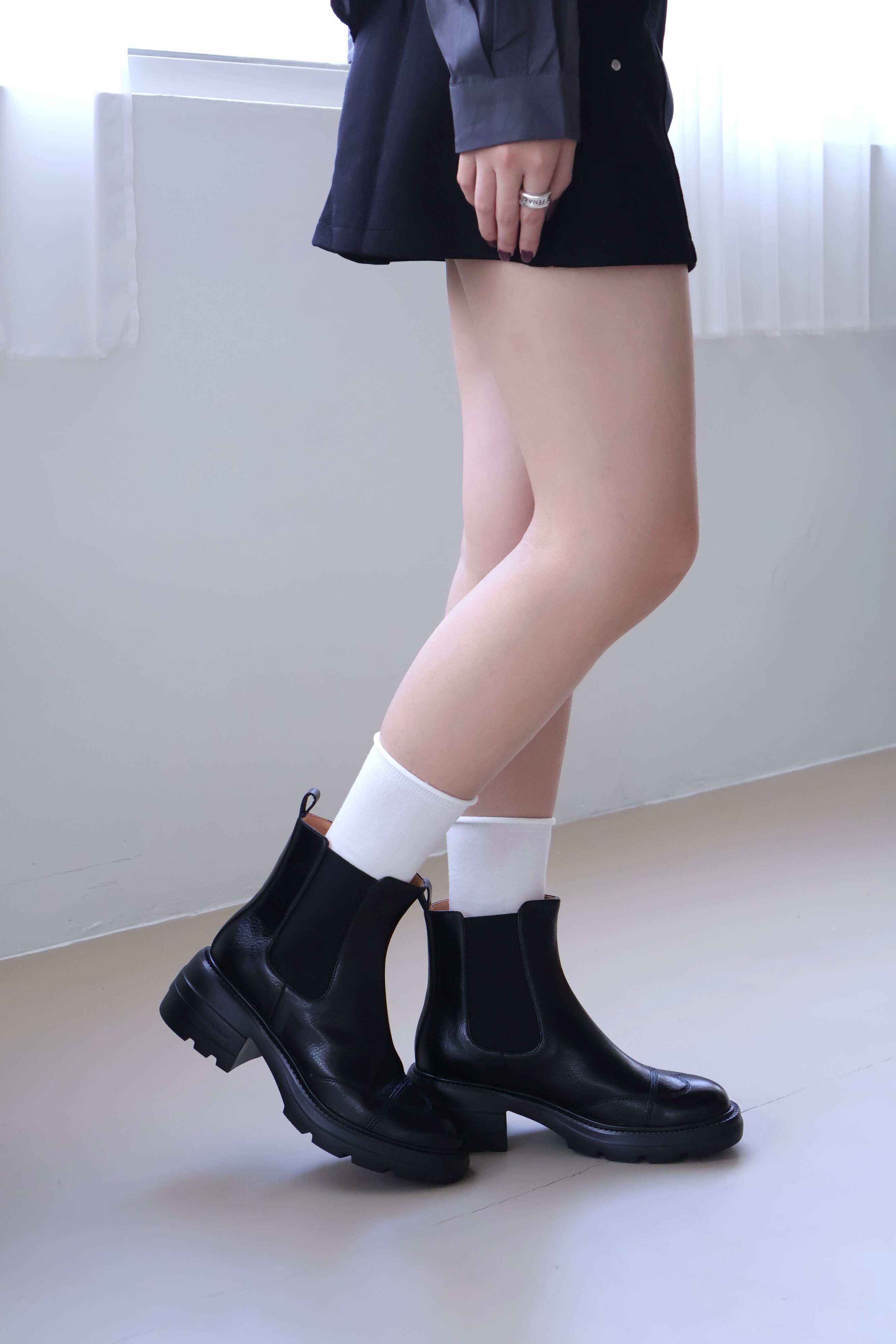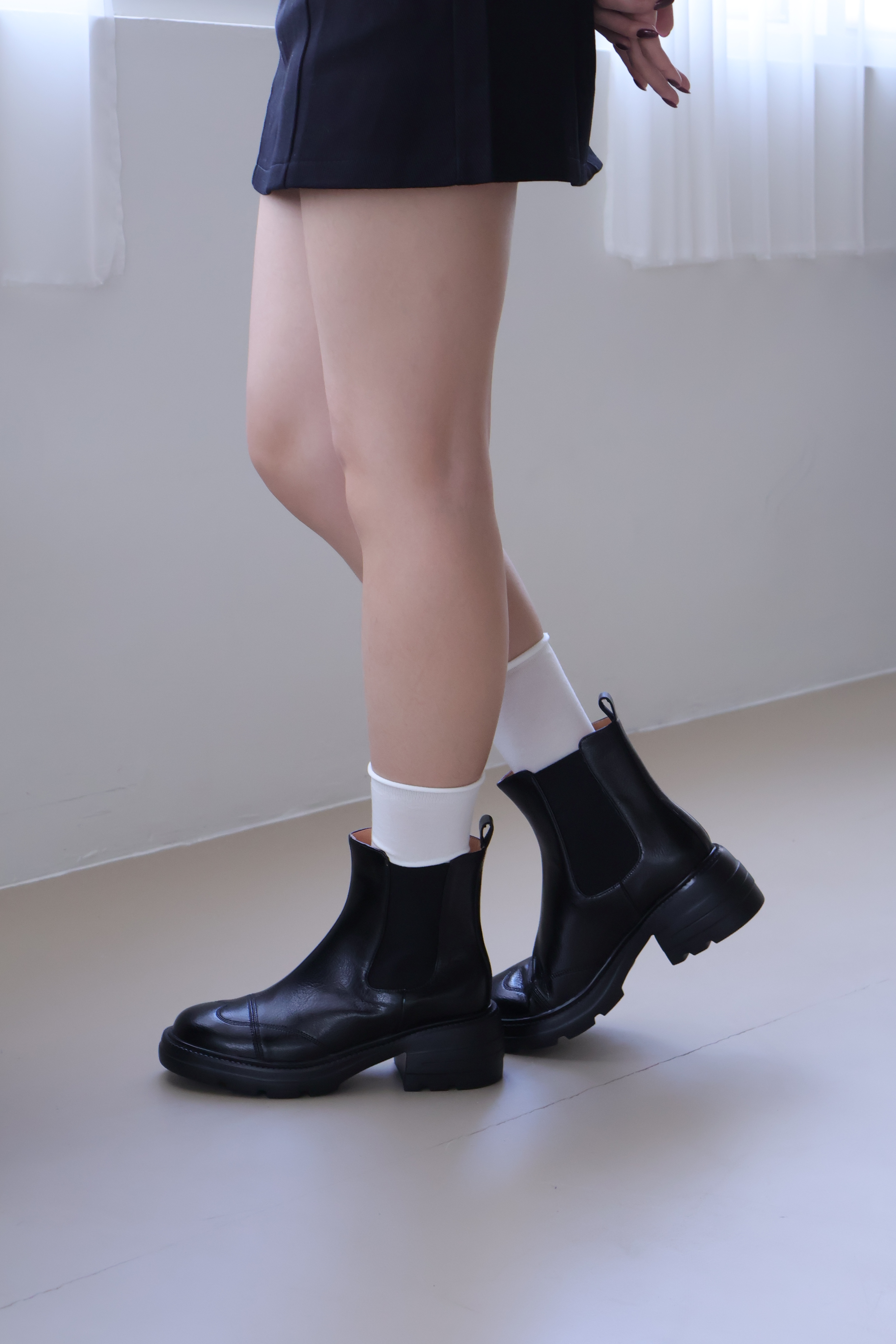 現貨 黑38 棕37 圓頭車線輕量粗跟短靴 -2色