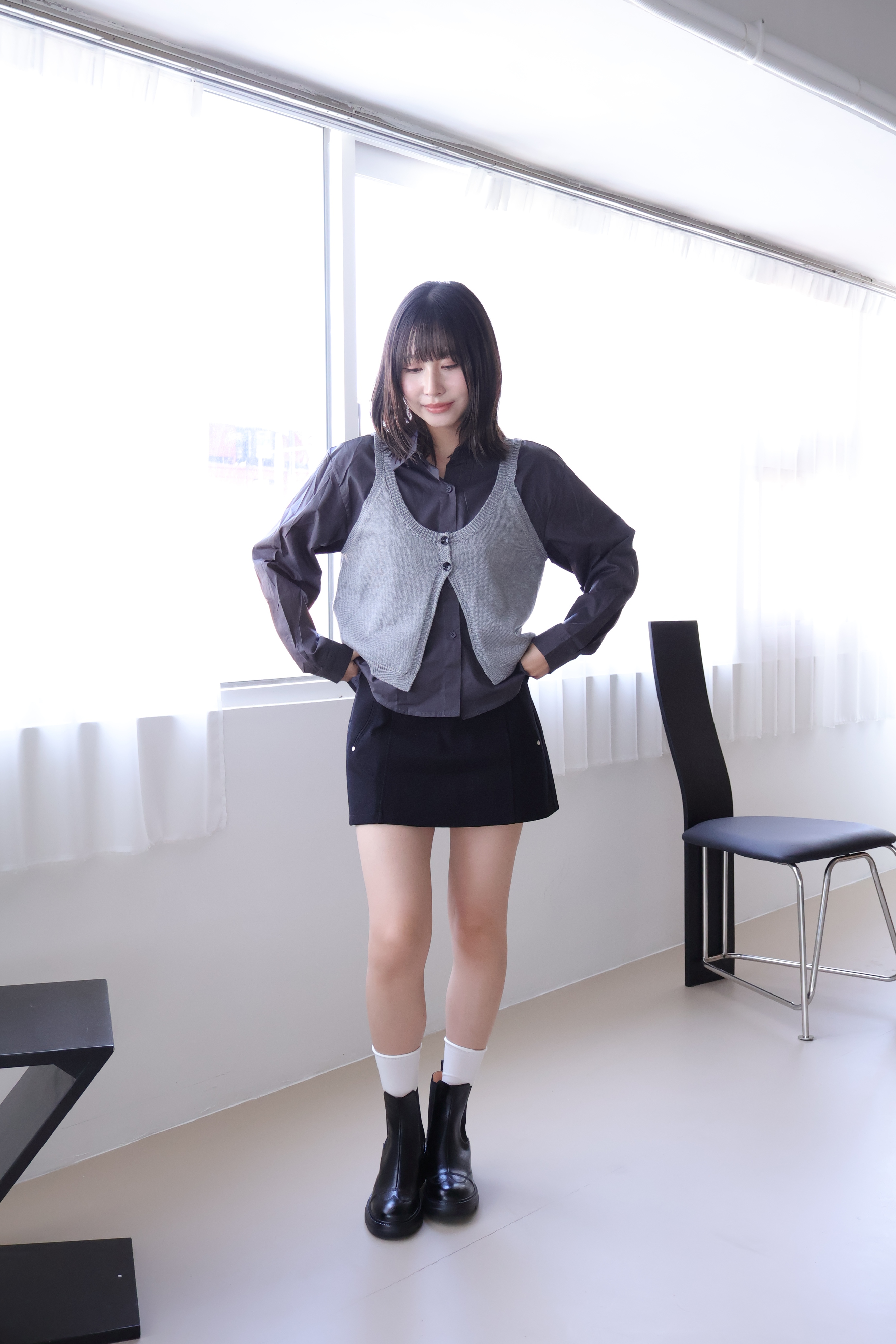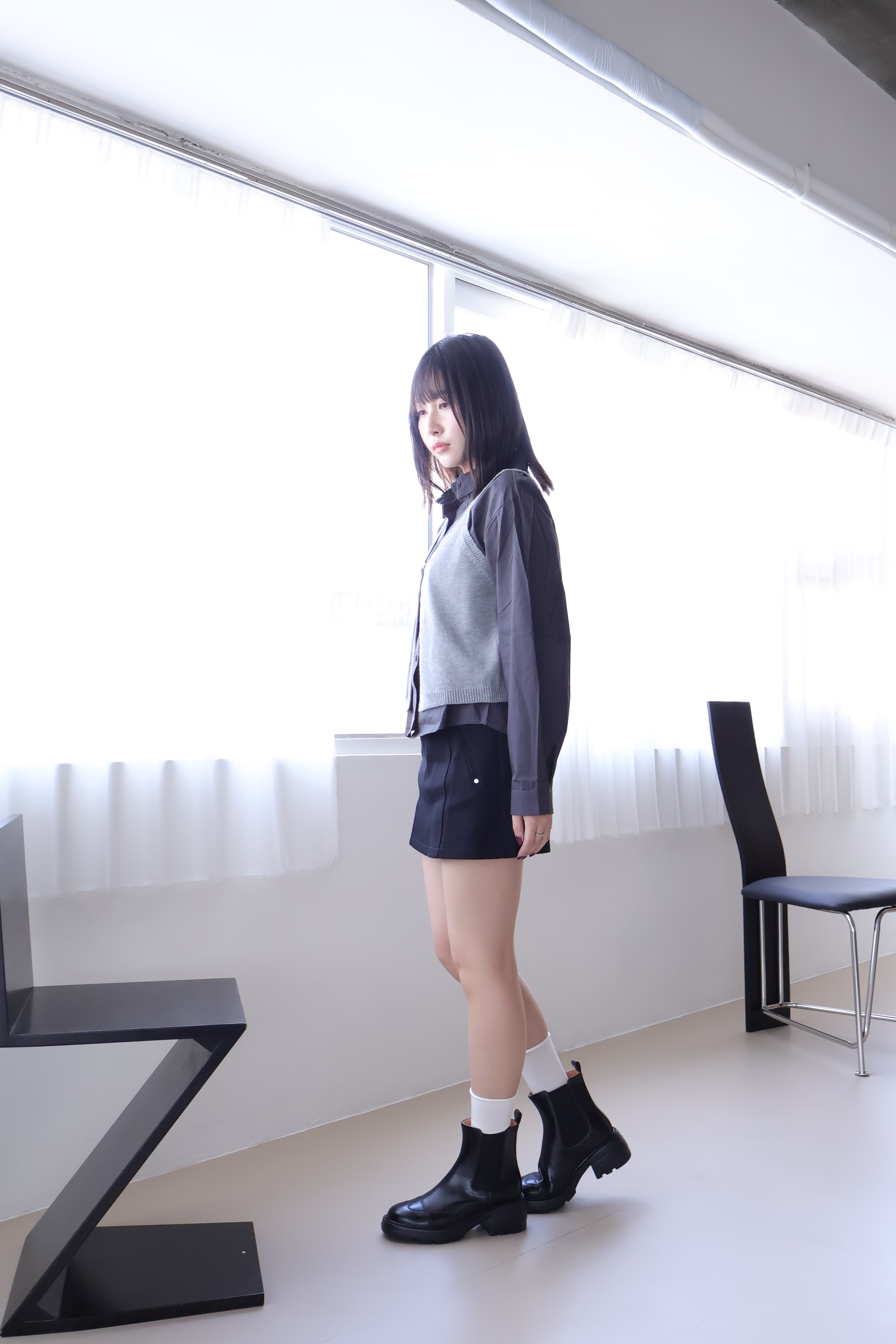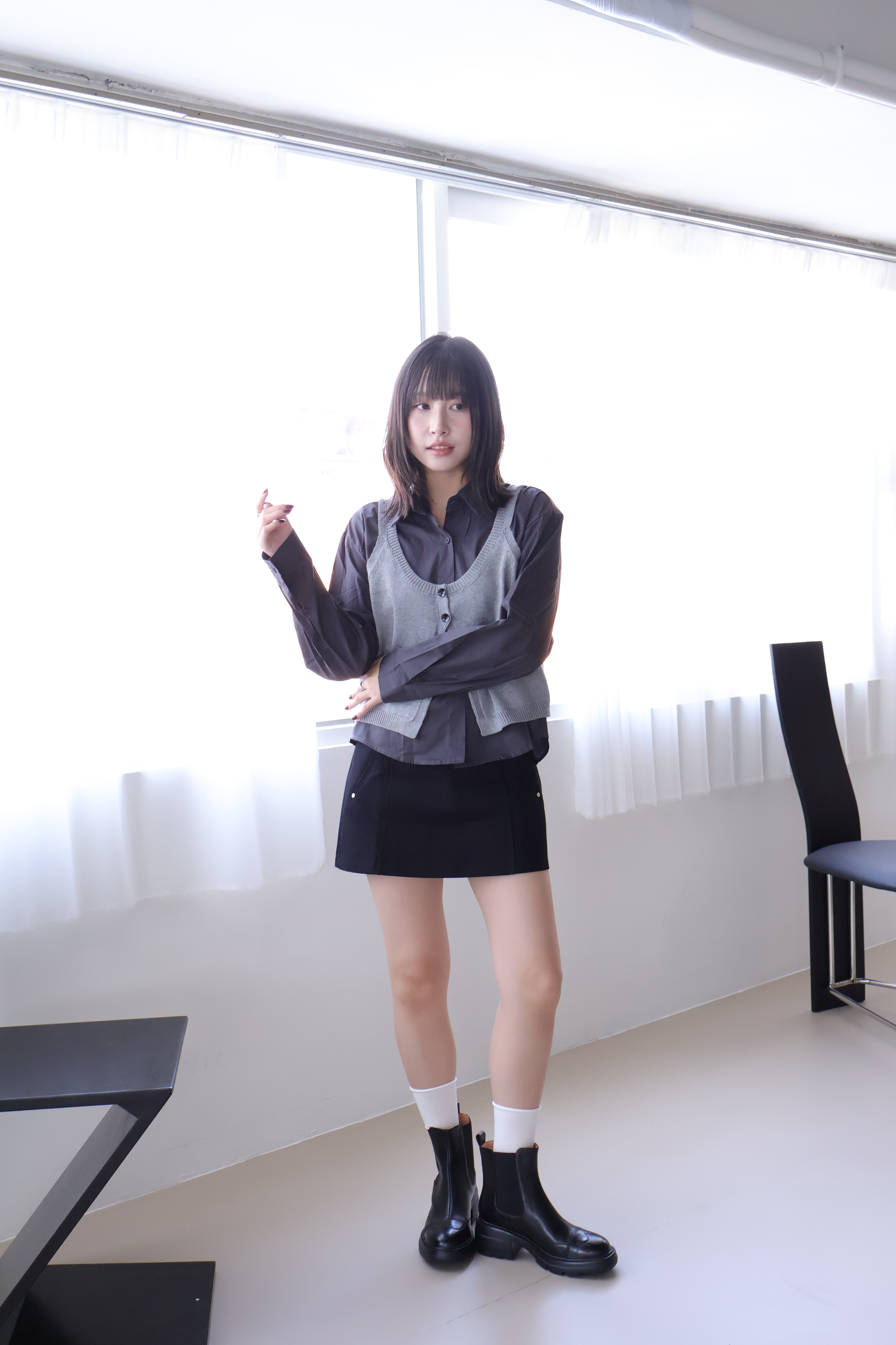 現貨 黑38 棕37 圓頭車線輕量粗跟短靴 -2色