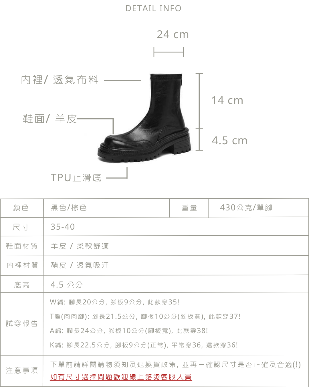 個性厚底粗跟短靴 -2色