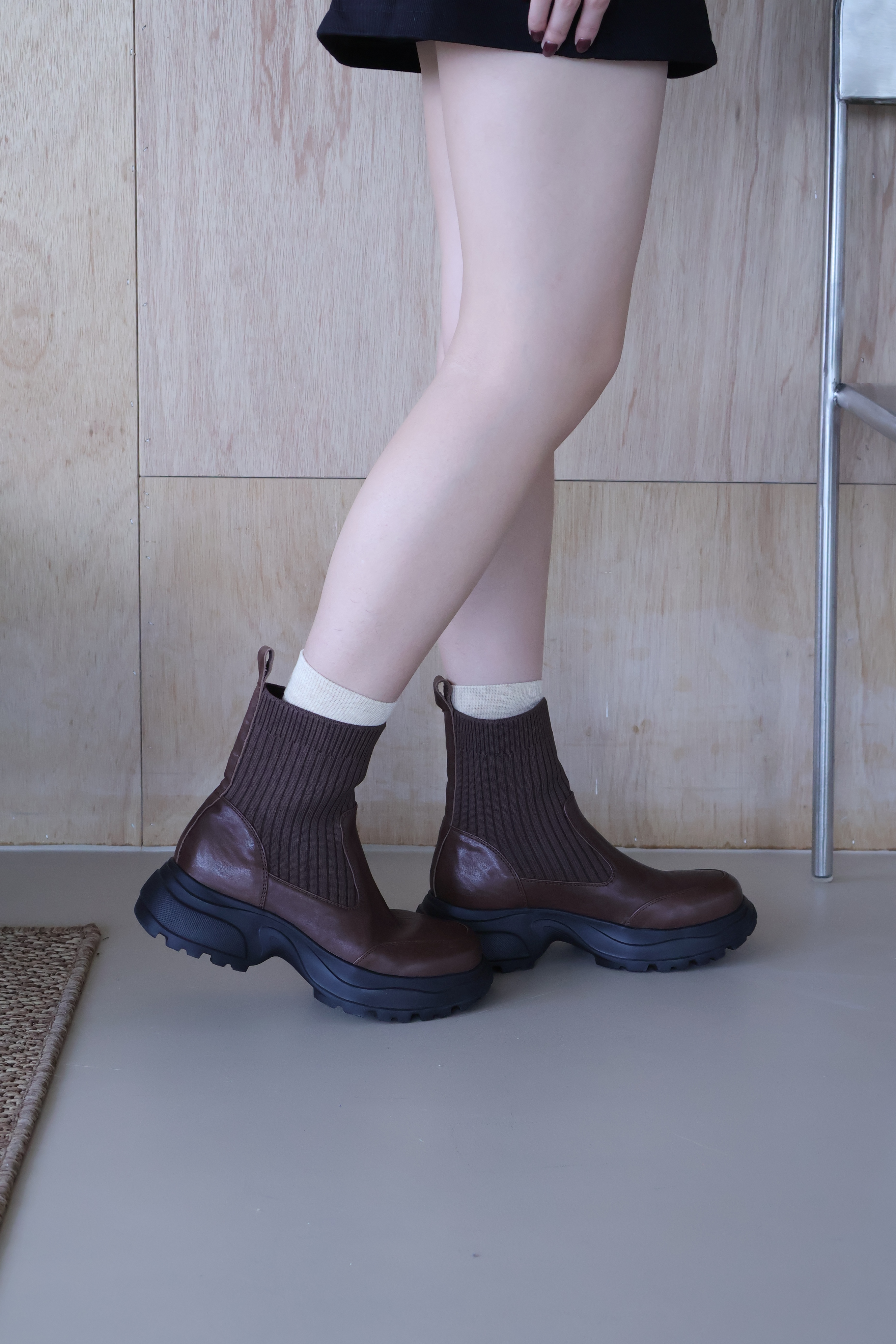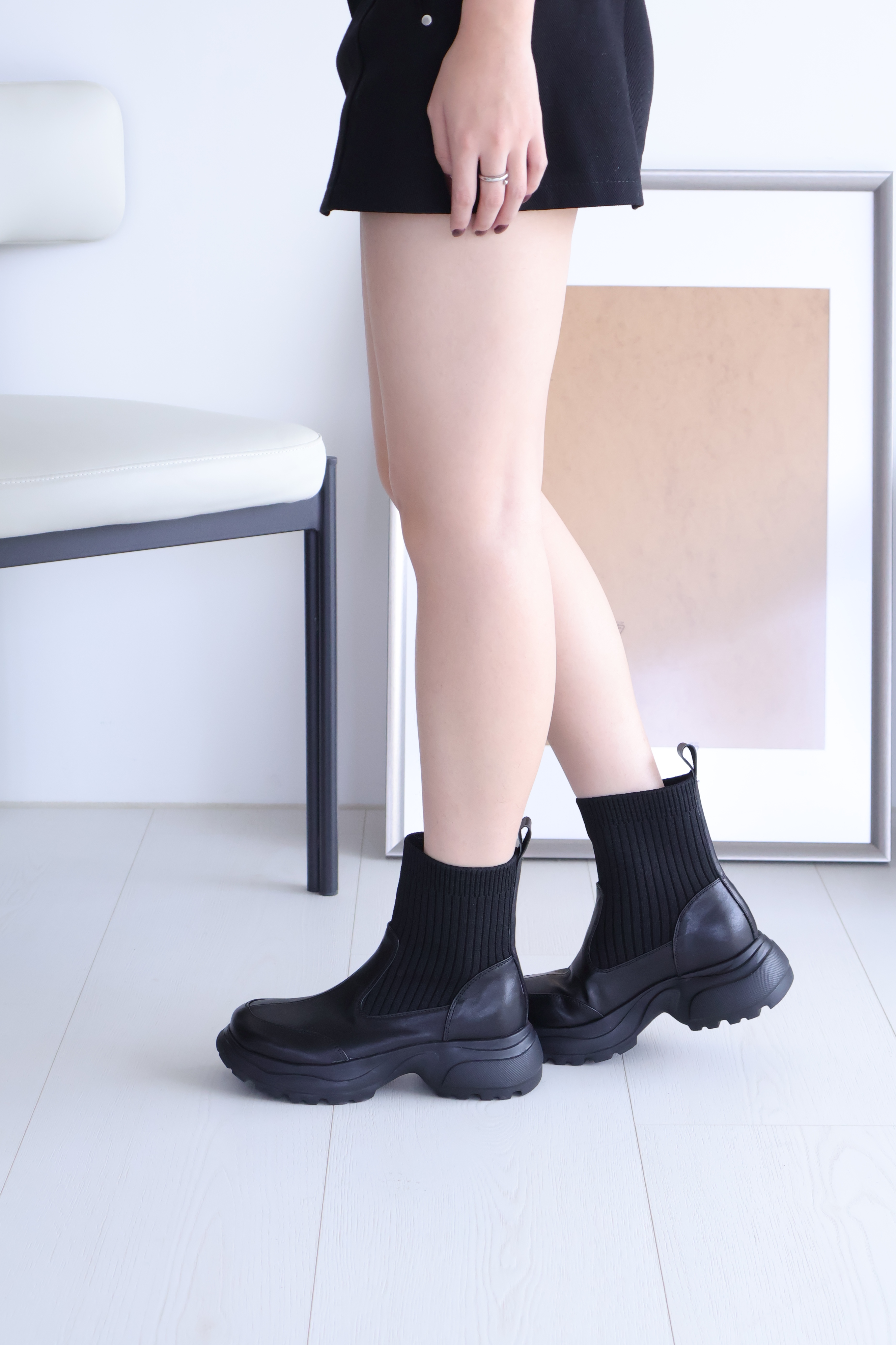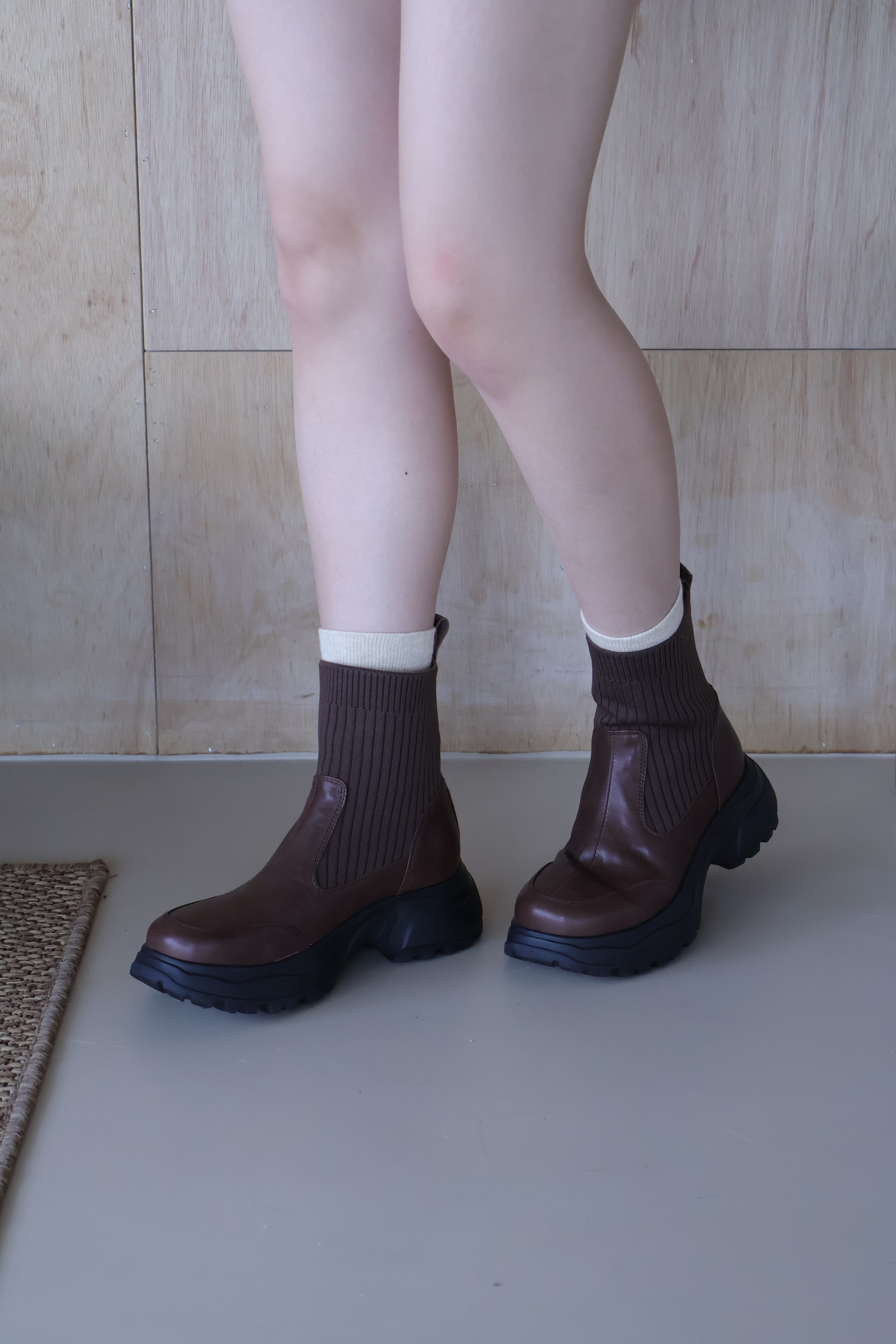 (現+預) 針織拼接真皮運動短靴 -2色