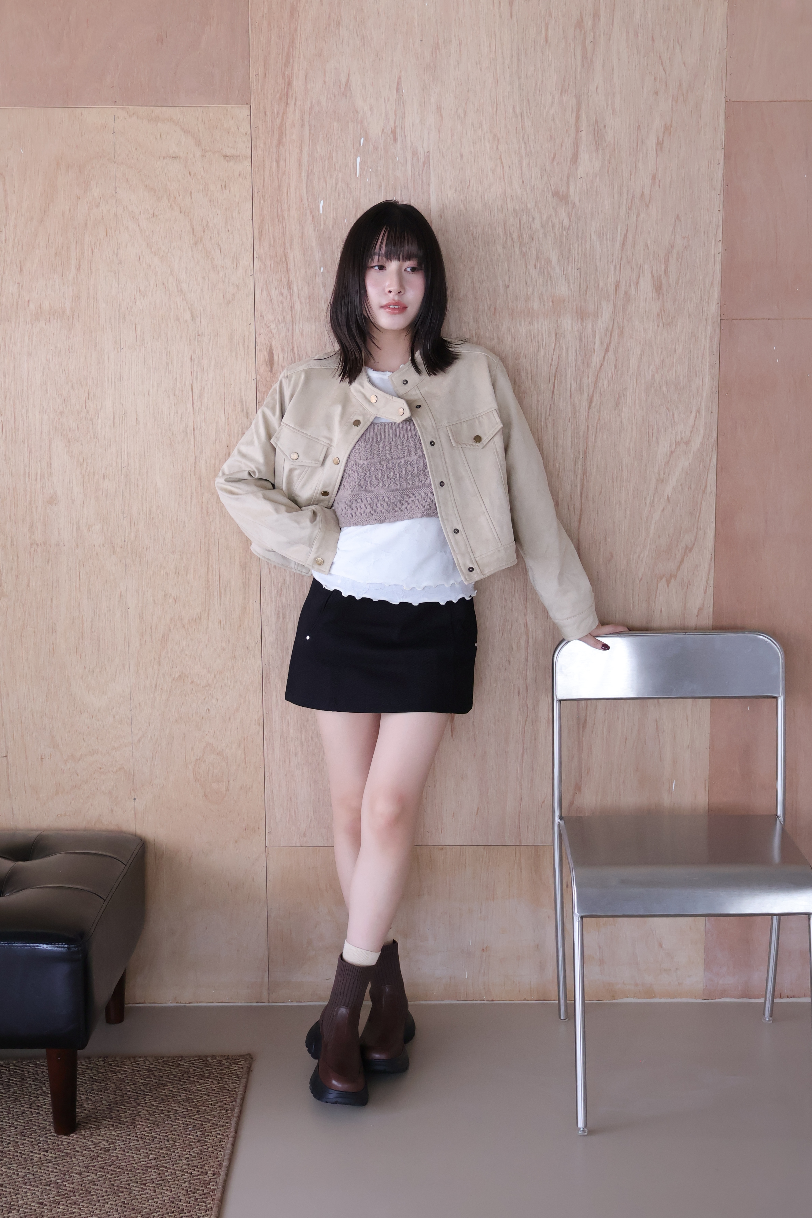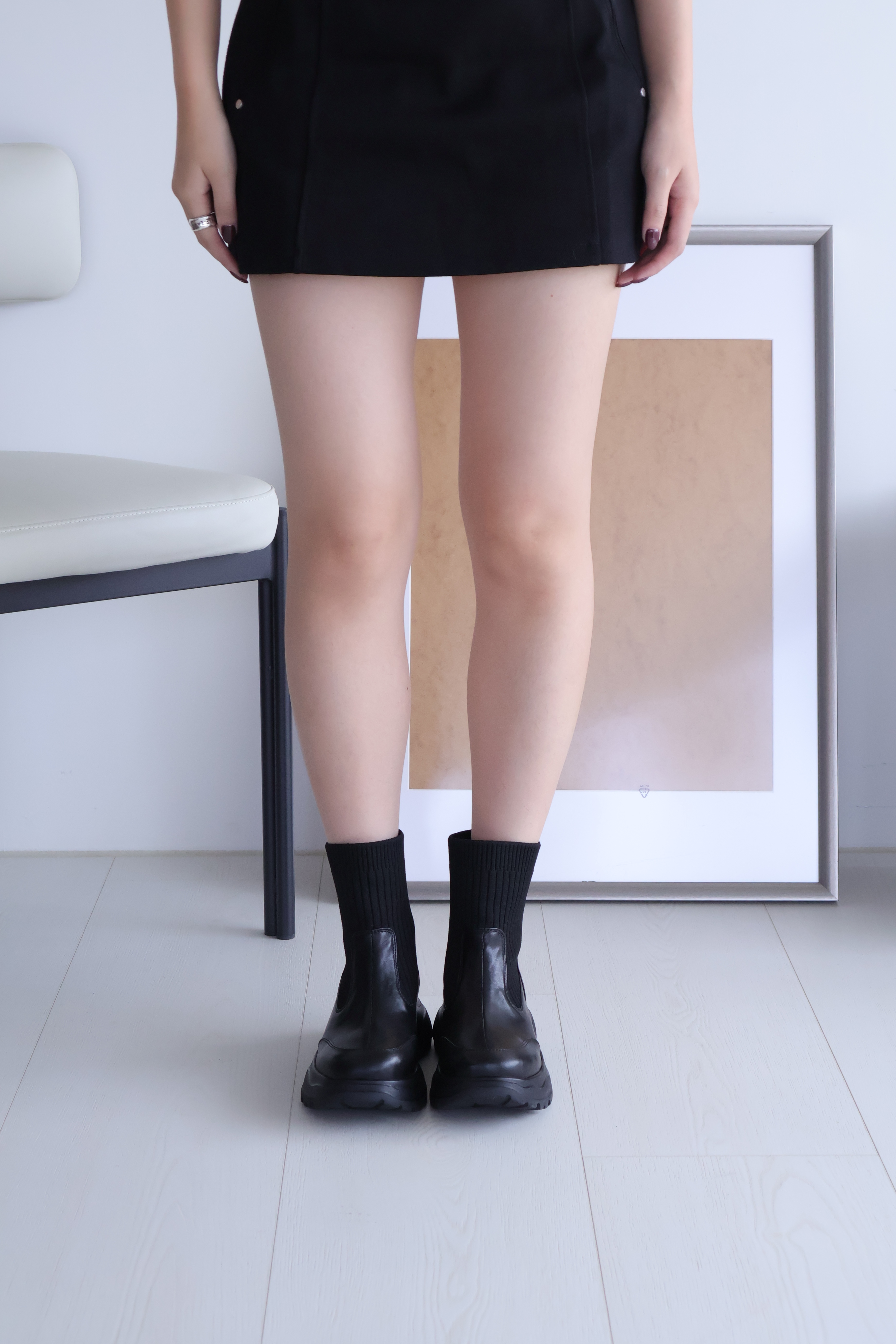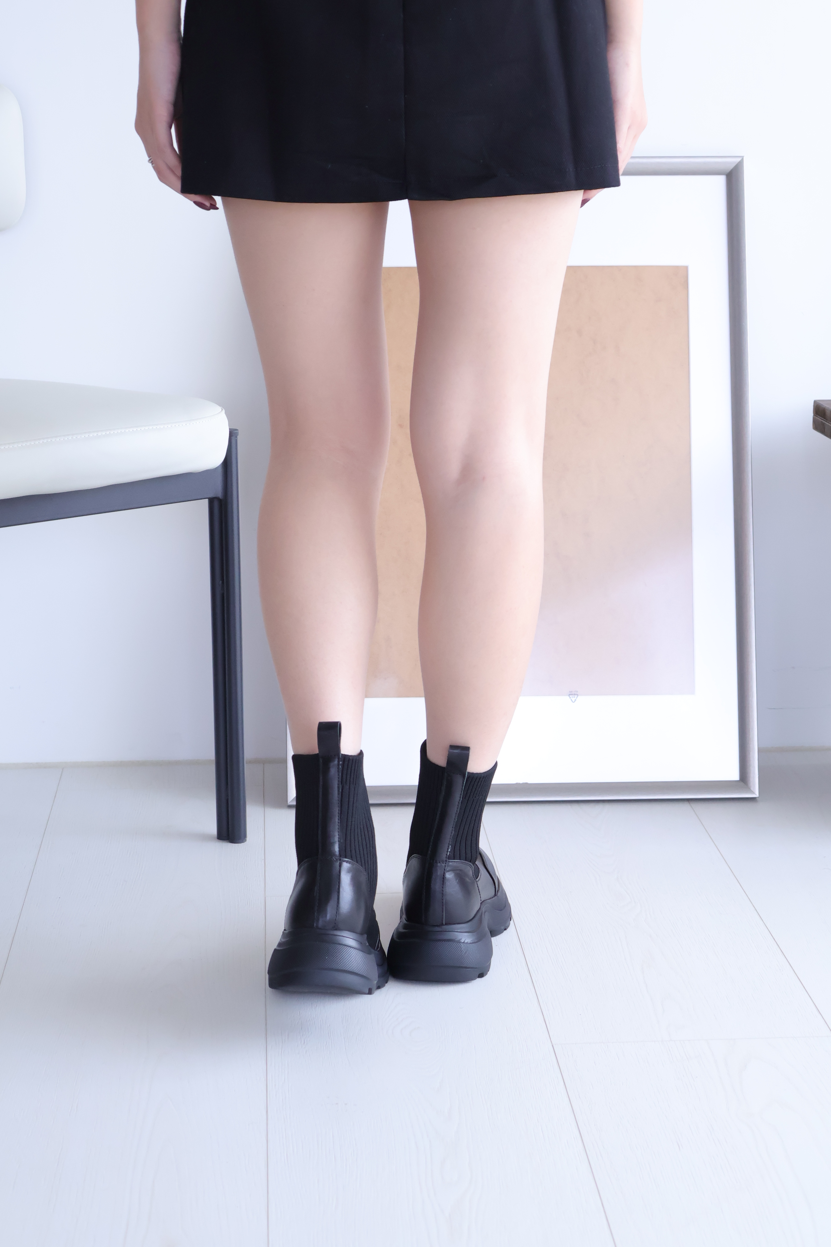 (現+預) 針織拼接真皮運動短靴 -2色