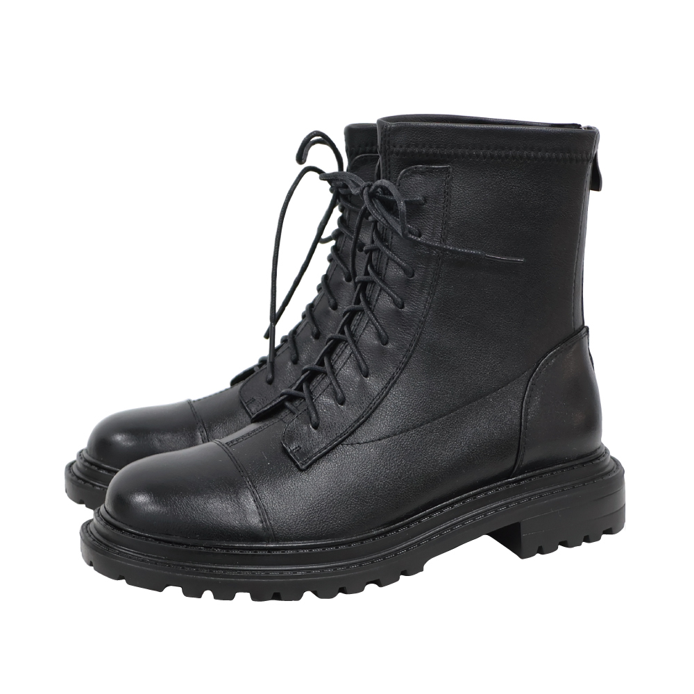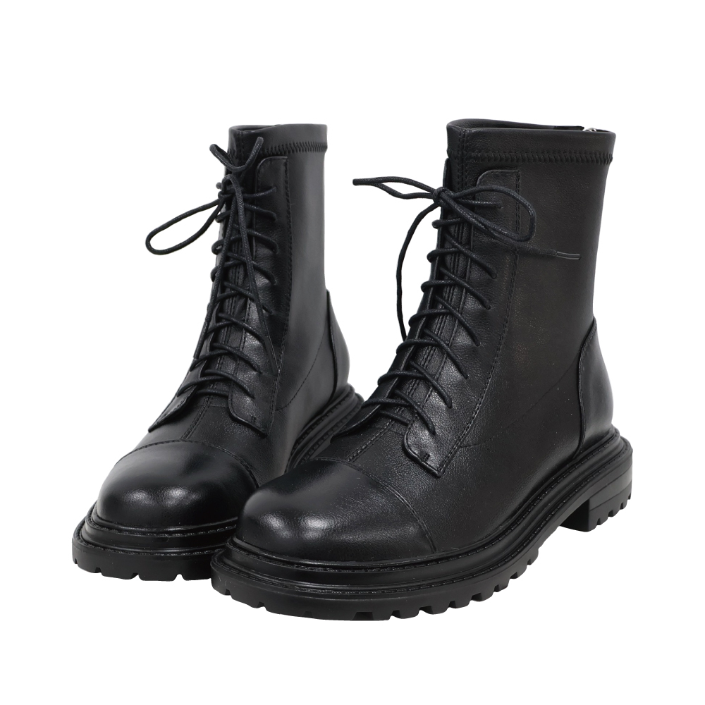 圓頭綁帶後拉鍊馬丁靴 -2色