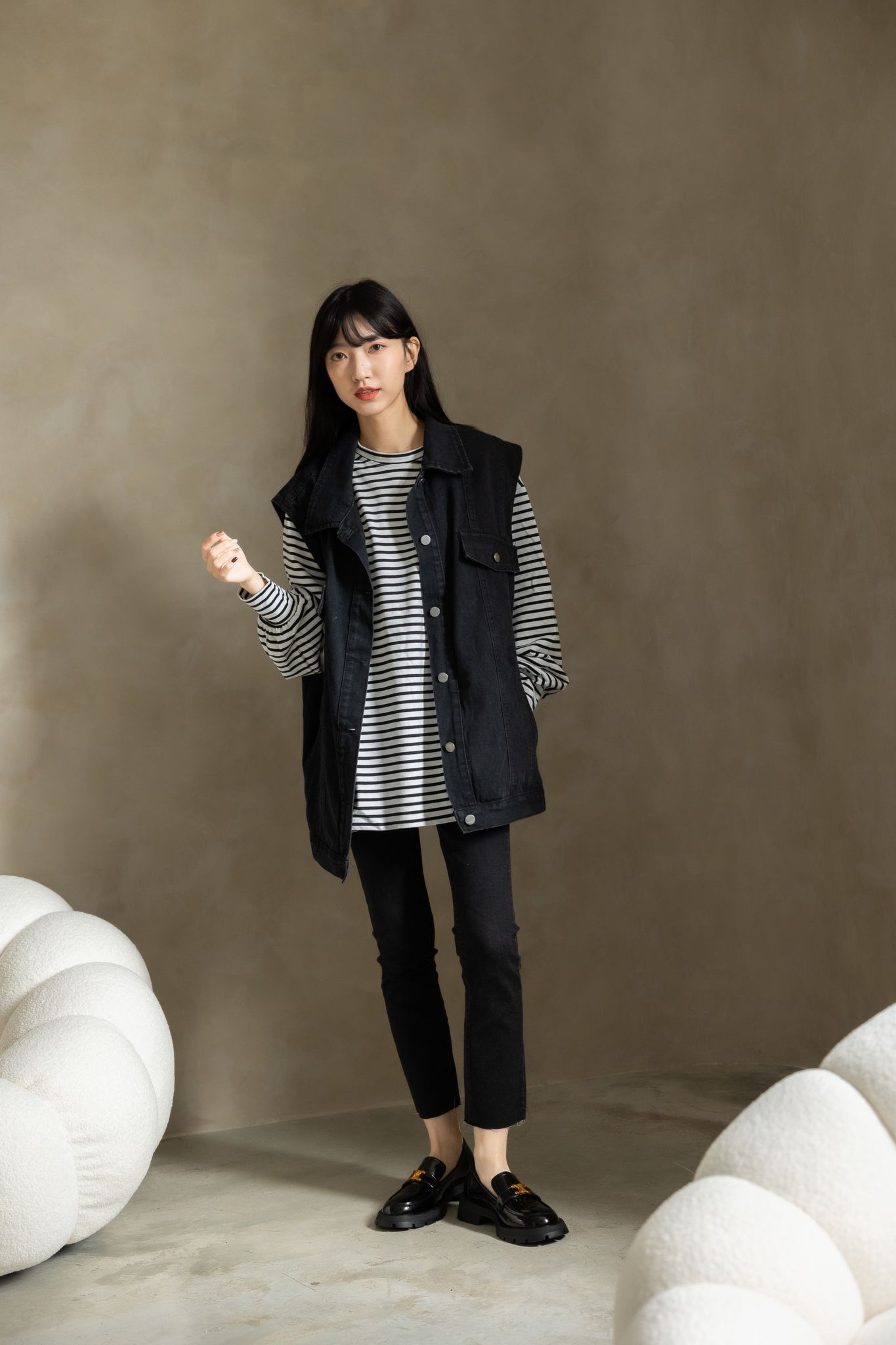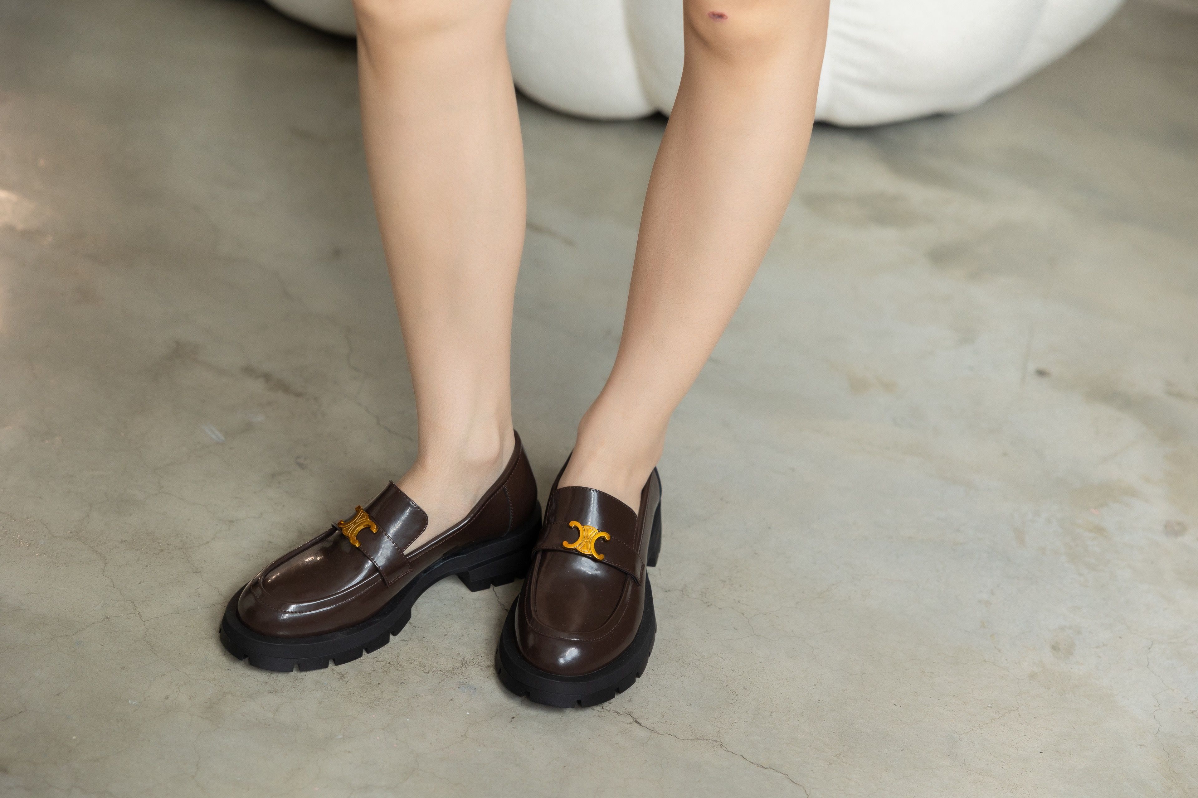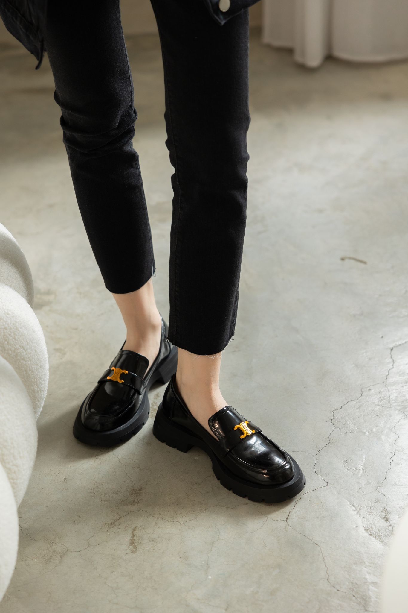 (現+預) 前衛搭配.牛漆皮金屬釦厚底樂福鞋- 2色
