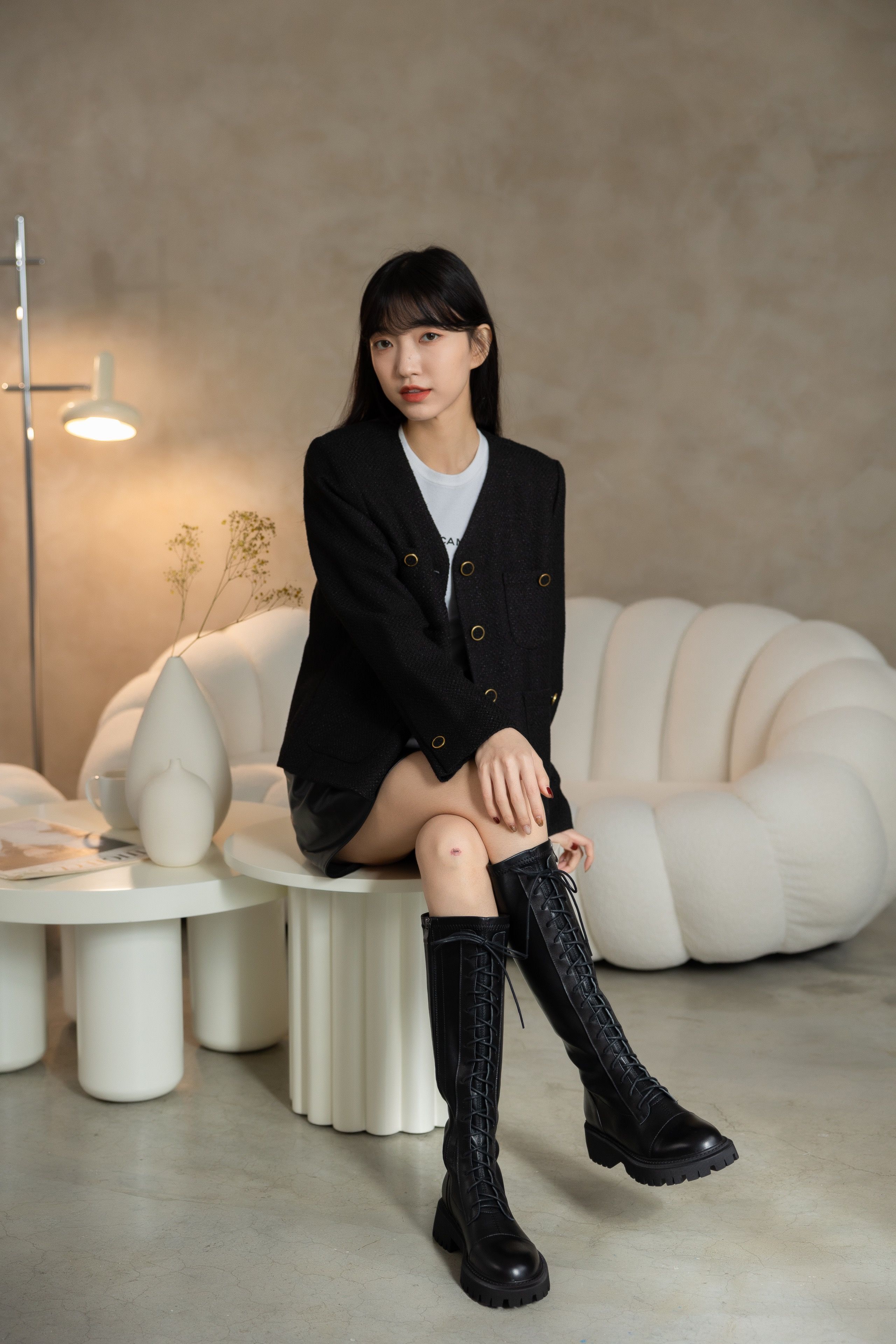現貨 黑37 38 時尚前線 - 真皮厚底綁帶馬丁長靴 -2色