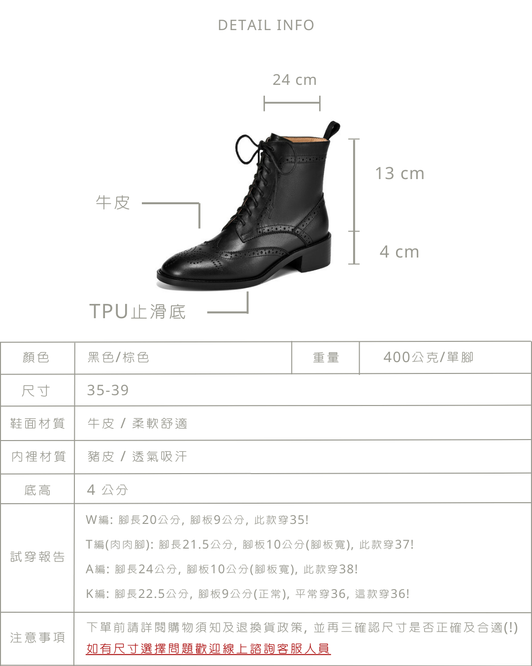 (現貨) 布洛克雕花綁帶短靴 - 棕37 黑38