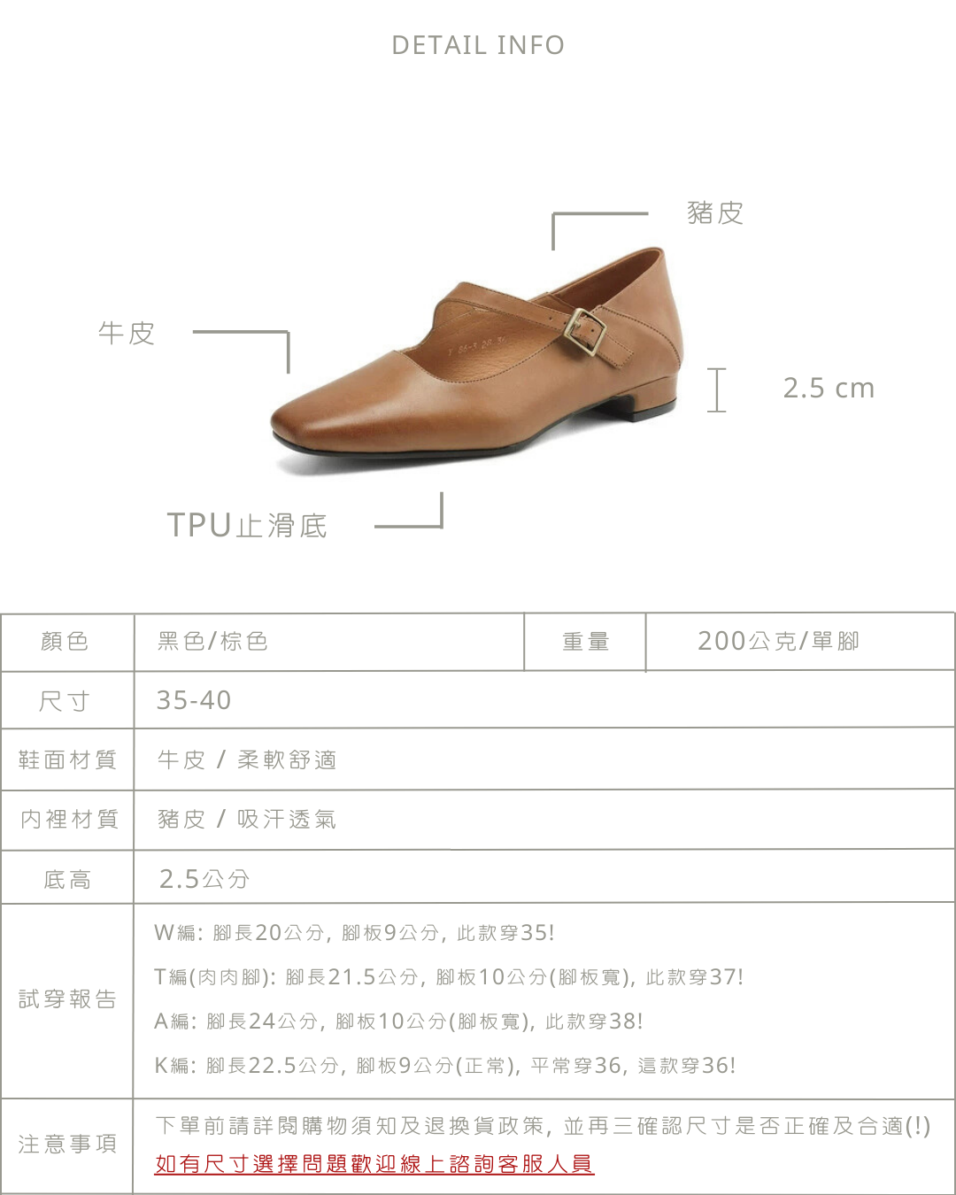 (現+預) 方頭斜扣低跟瑪莉珍鞋 -2色