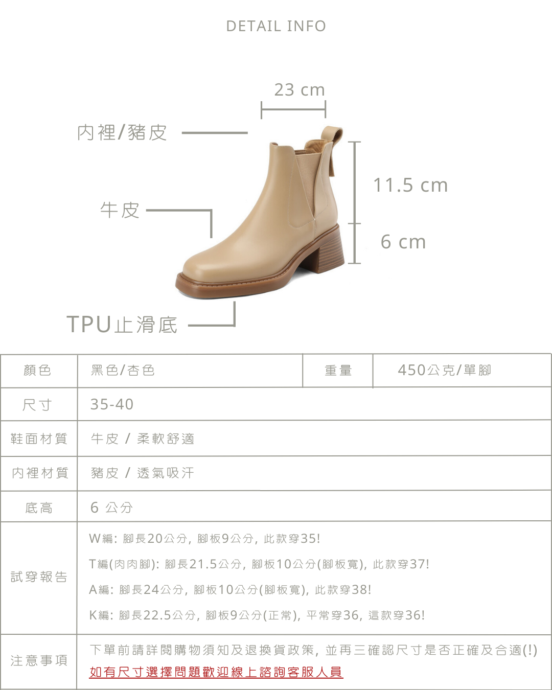 (現+預) 簡約方頭V口粗跟短靴 -2色