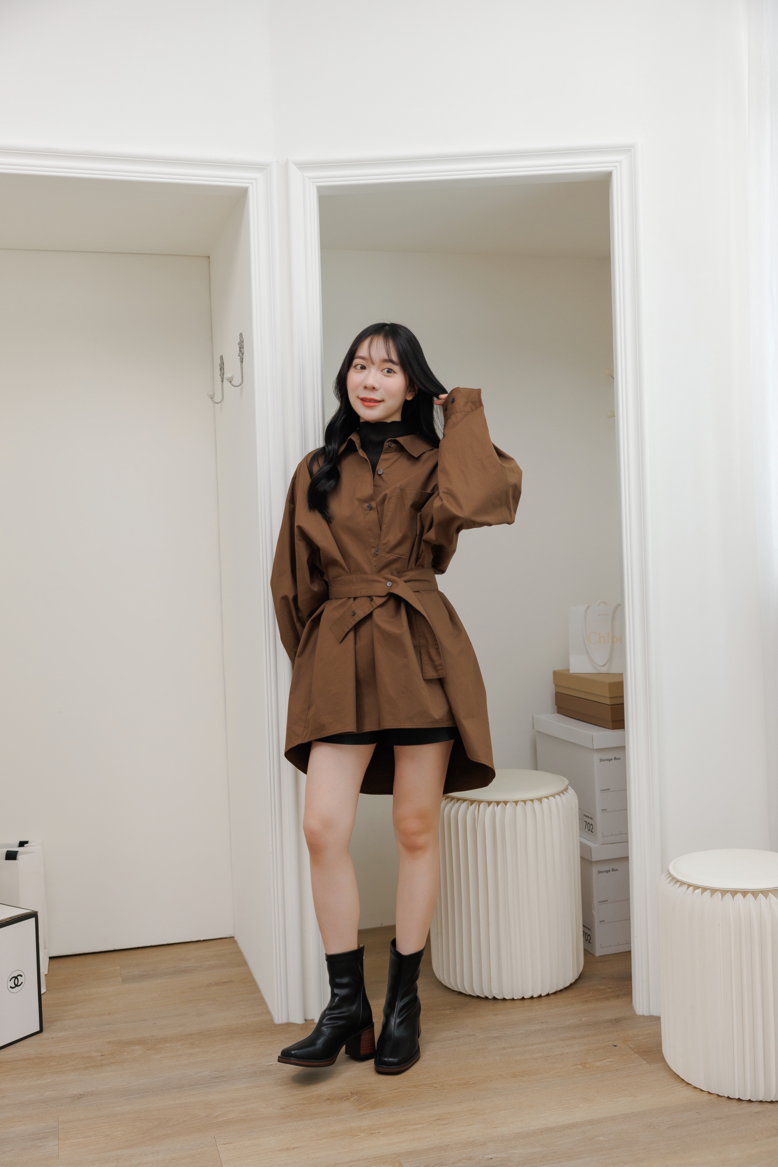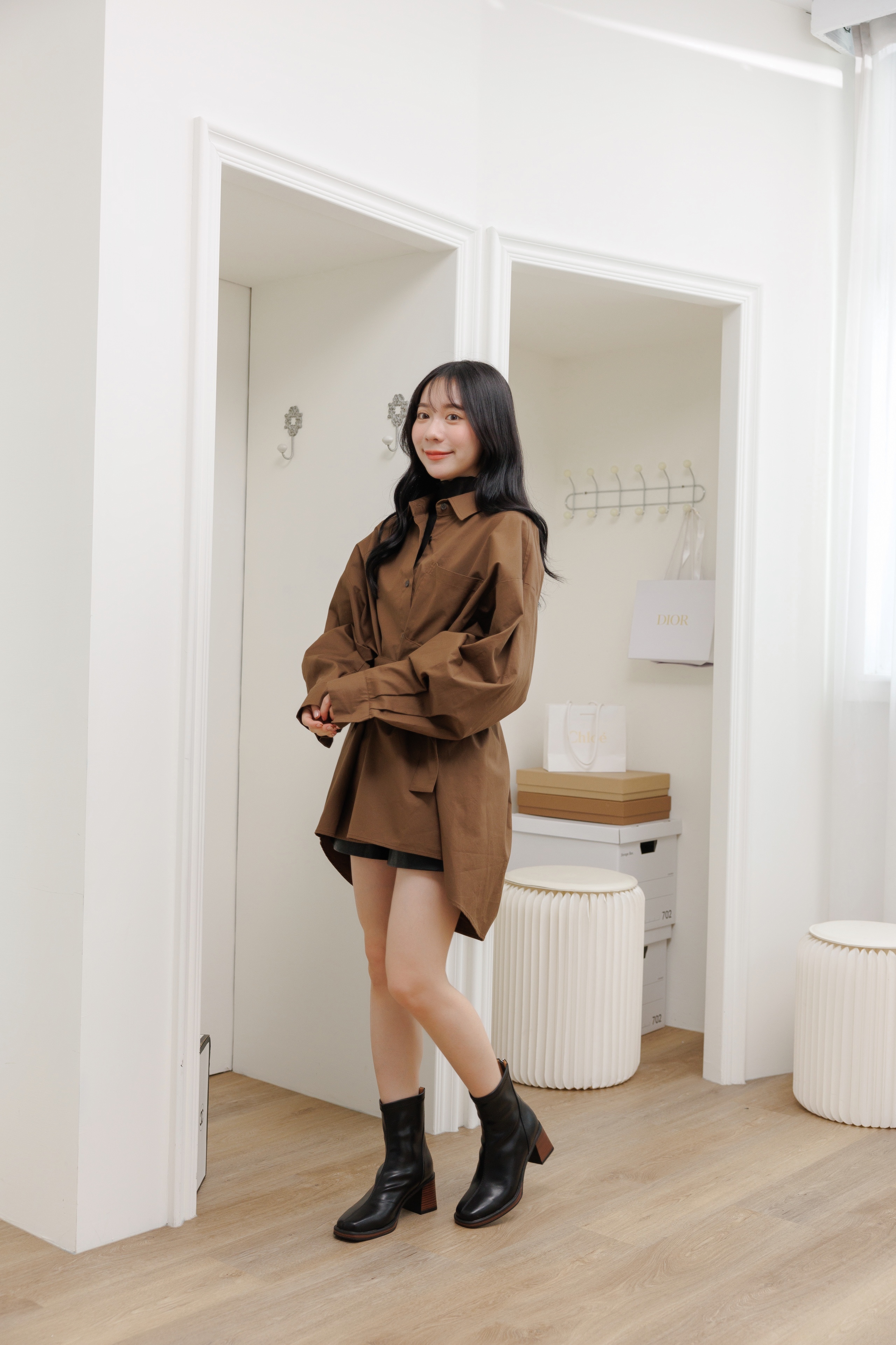 現貨 黑39 棕38 法式方頭高粗跟短靴 -2色