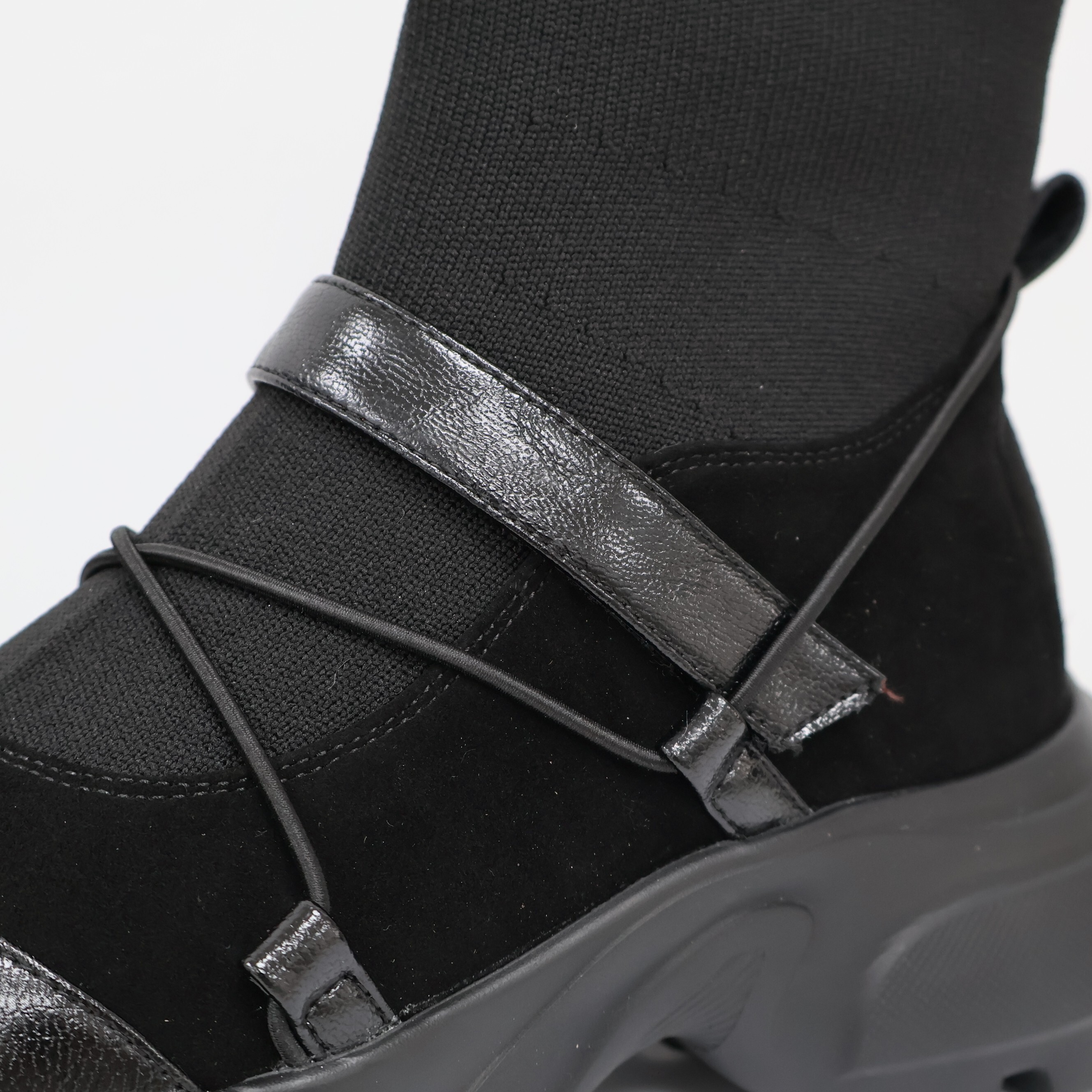 現貨 黑36 37 38 棕37 設計感針織運動短靴 -2色